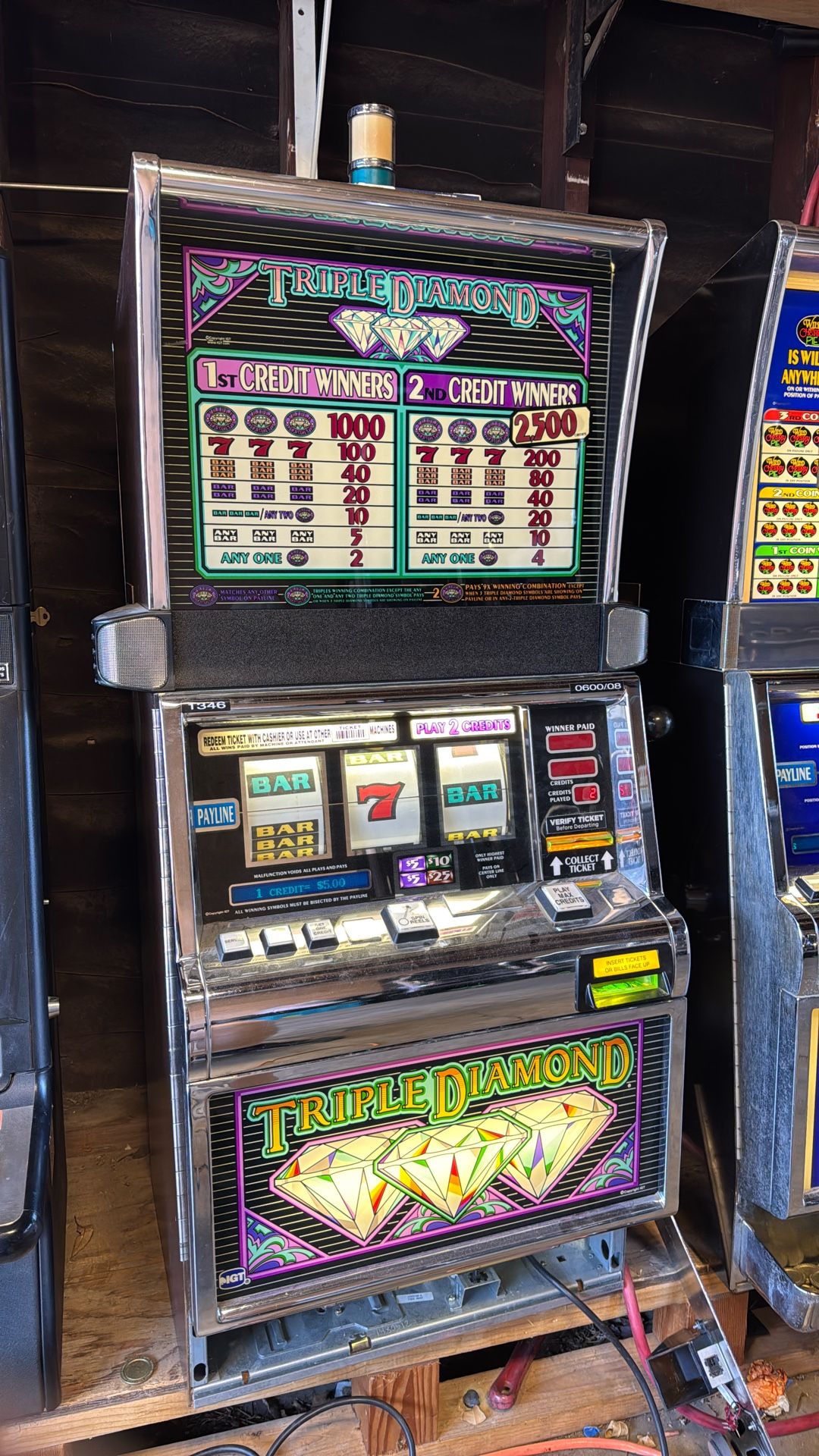 High denom and multi denom slot machine. Takes cash and has free play as well.