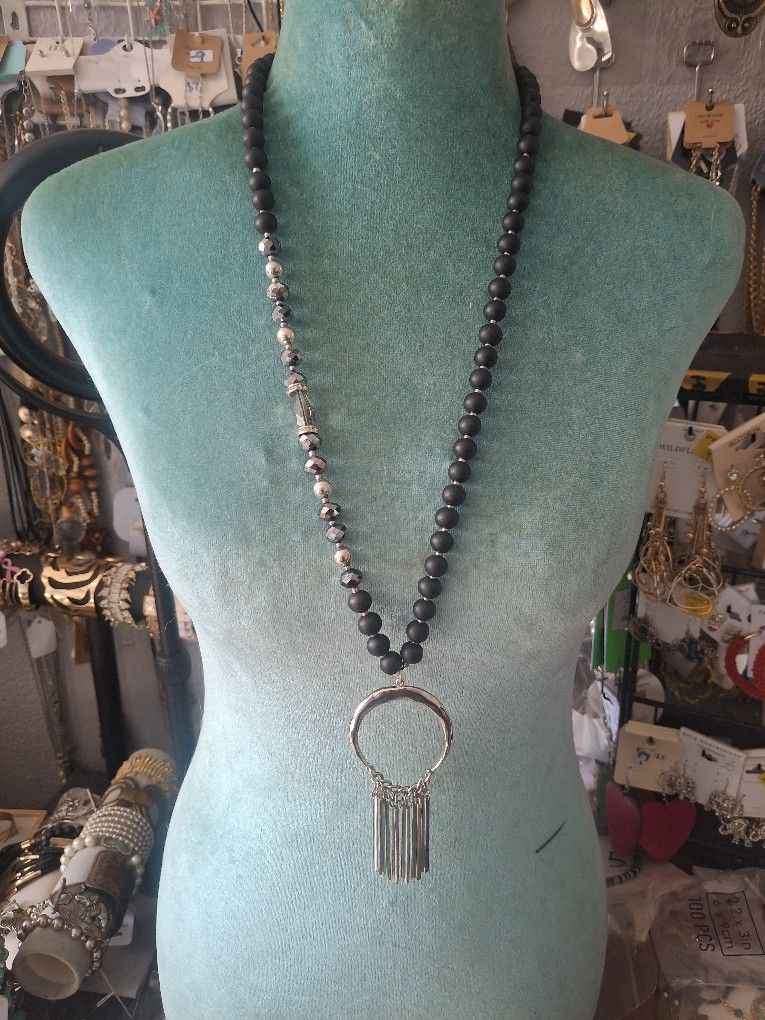 Tassel Circle Pendant Beaded Necklace