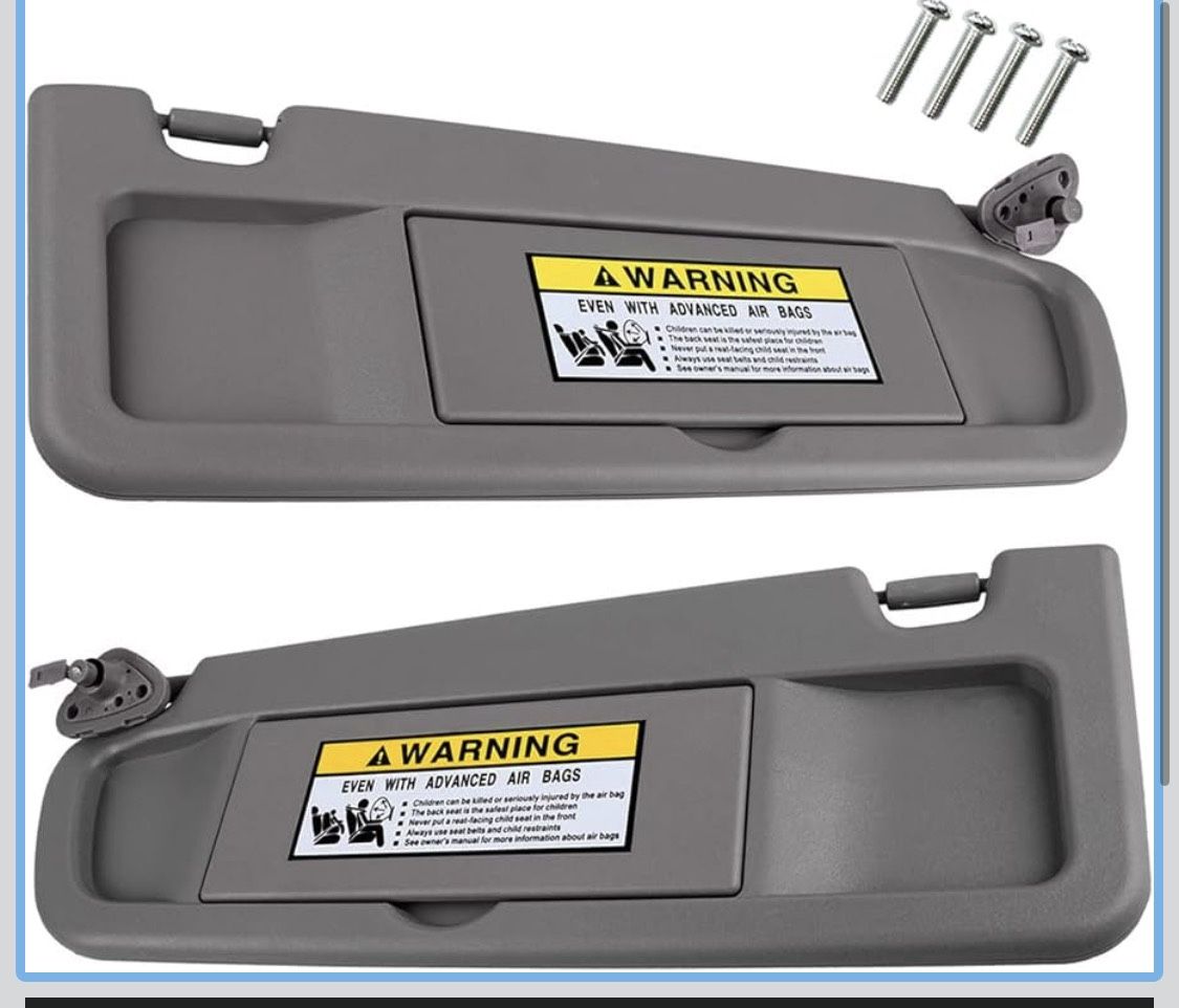 Left Driver and Right Passenger Side Sun Visor Atlas Gray --The sun visor is designed to avoid the glare of the sun and prevent the influence of the sun. It is the best substitute for the old or worn sun visor. To avoid accidents, the cooling effect is better. Please check the model list first to confirm whether the model is accurate before placing the order. 2006 Honda Civic EX LX Sedan SI Coupe 2007 Honda Civic EX LX Sedan SI Coupe 2008 Honda Civic EX LX Sedan SI Coupe 2009 Honda Civic EX LX Sedan SI Coupe 2010 Honda Civic EX LX Sedan SI Coupe 2011 Honda Civic EX LX Sedan Coupe Description: Materials: ABS reinforced plastic stretch cotton Color: Atlas Gray Type: with a built in mirror. Without LED Light Wear resistance High temperature resistance Direct replacement Easy install and durable use Replaces Part Number Left Driver Side: # 83280-SNA-A01ZA Right Passenger Side: # 83230-SNA-A01ZA
