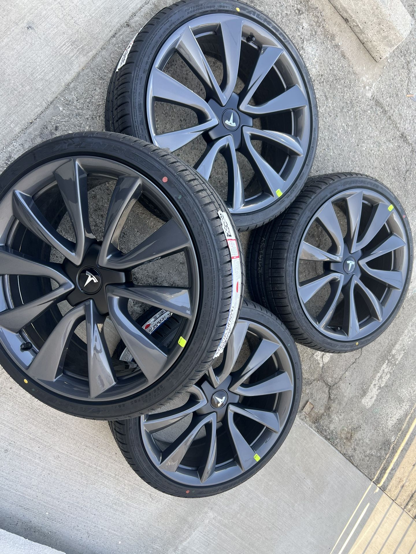 20” Rines y llantas Originales para Tesla model 3 Rines nuevos originales de factoría Tesla OEM 235/35/20 llantas nuevas Falken Azenis FK510 nuevos nunca usados 100% limpios $1695 20” new Tesla model 3 OEM Rims and tires New Original OEM factory Tesla wheels 235/35/20 new Falken Azenis FK510 tires New never used 100% clean $1695 Serious buyers only Thank you Colors available Gunmetal Silver Gloss black Satin black ( trades welcome ) ( se aceptan cambios ) Tesla Rines Model 3 rines Tesla model 3 wheels Tesla model 3 OEM set of rims Tesla model M3 OEM Rims Stock rims Stock wheels 5X114 bolt pattern 35MM offset Size 20X8.5