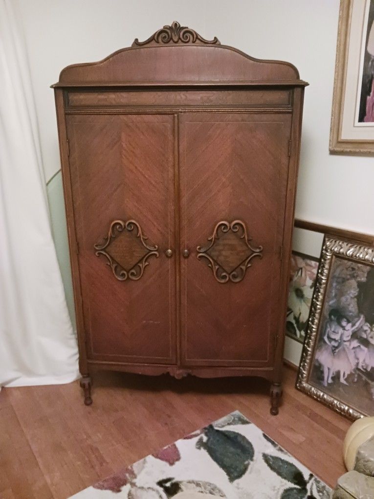 This Antique 1940's Armour Is Beautifully Made With One Side For Hanging Clothes And Other For Jewelry, Handbags Etc.