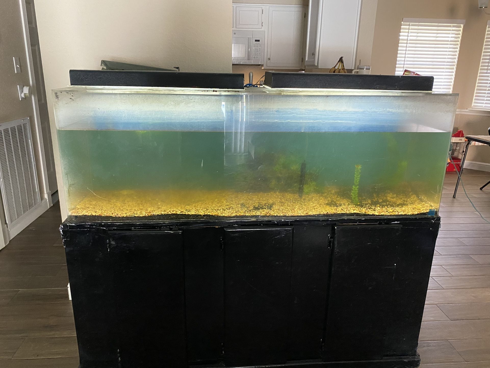 100 gal fish tank Comes with filter,pumps,rocks,the stand and lights included