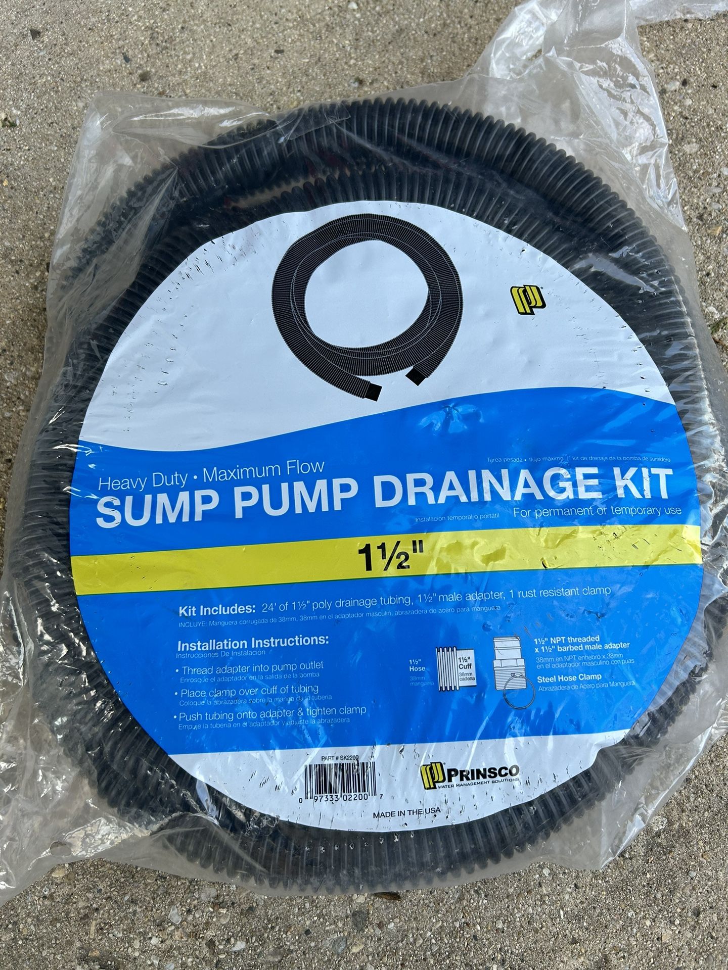 Sump pump drainage kit 1 1/2 24 feet long Pick up in Hanover Park