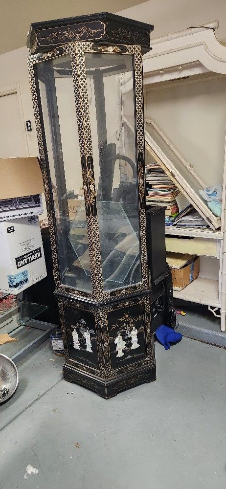 Beautiful Chinoiserie antique Chinese display cabinet black lacquar
