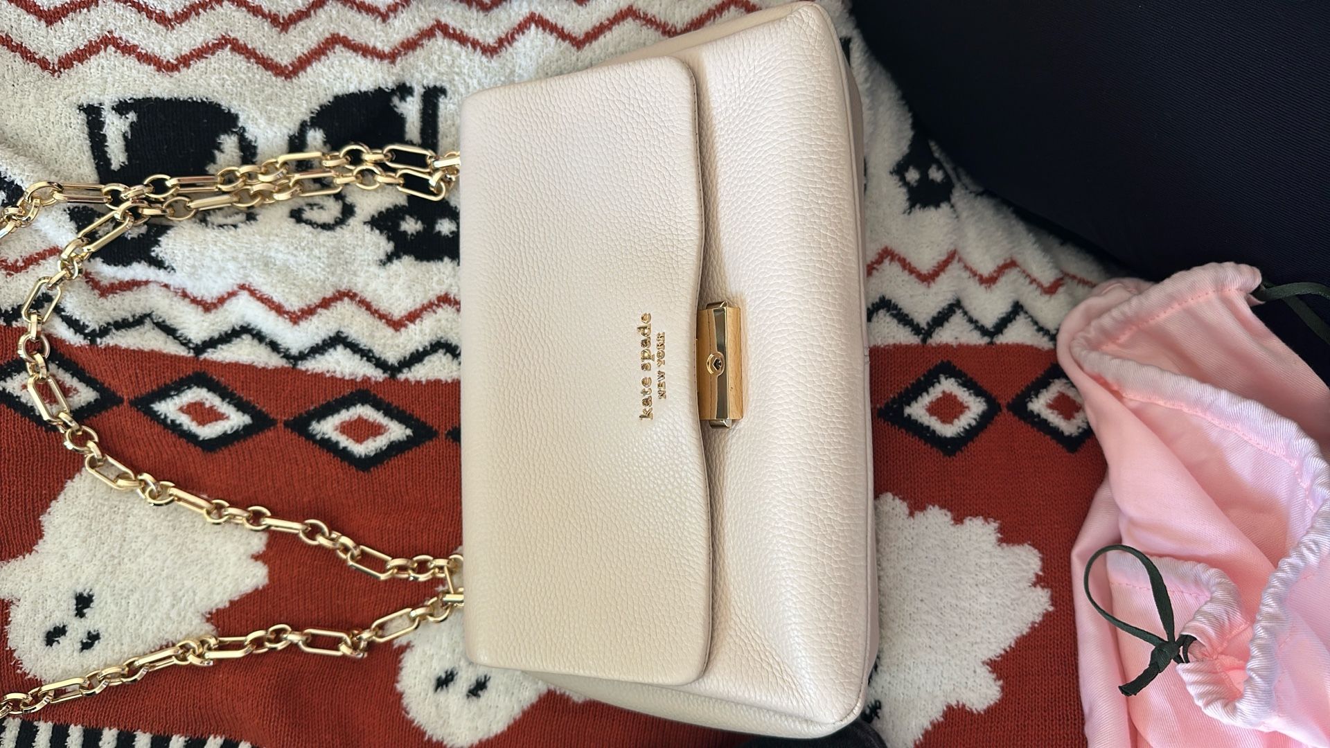 Beautiful cream color purse! Can wear it as a shoulder bag or a crossbody. Plenty of room inside.