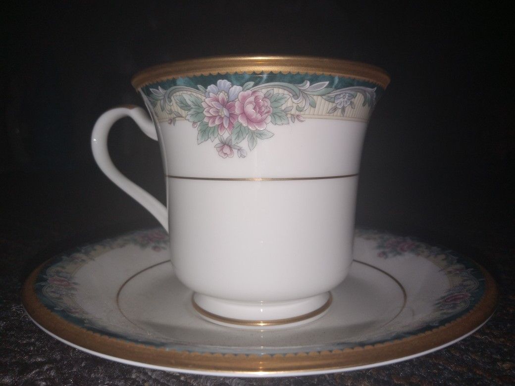 Noritake Fine Bone China MI AMOR Teacup & Saucer Never Used BRAND NEW 14 CAROT GOLD PLATED