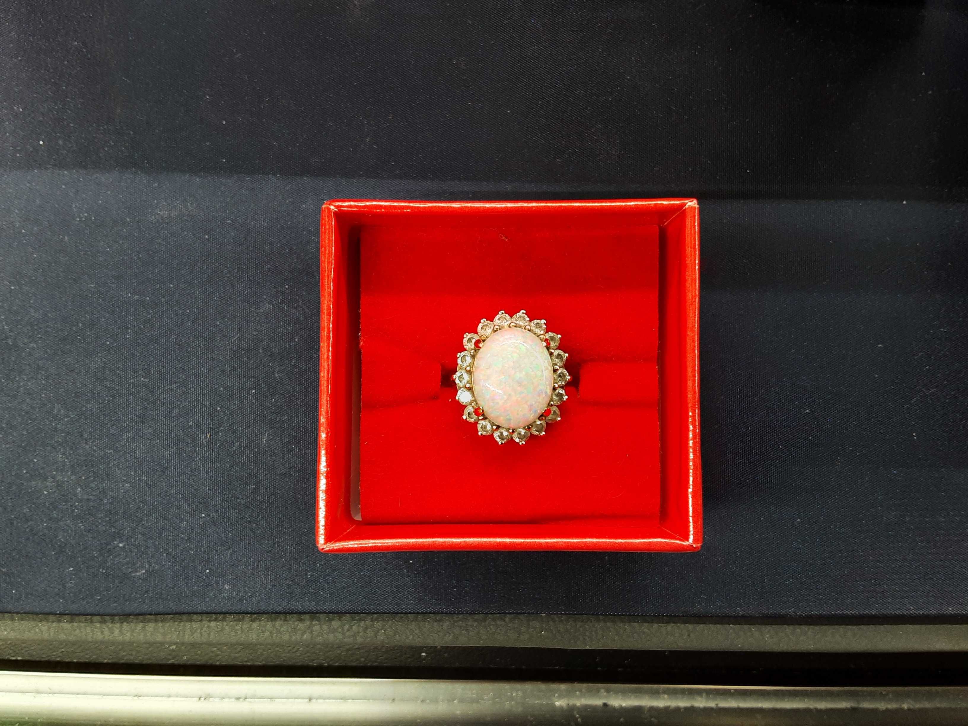 Overview Material Type Gold Weight (in grams) 5.7 Color Yellow Karat 14K (.585) Ring Size 5 Stone Details # of Stones Color Size Shape Quality 1 White 450 Oval Promotional 18 Cubic Zirconium 4 Round Promotional