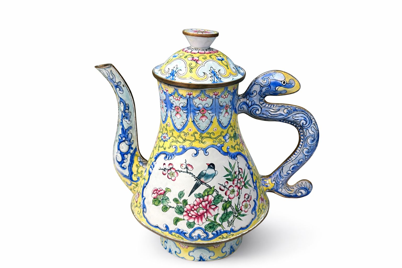 Vintage Chinese Cloisonné Dragon Teapot – Hand-Enameled Floral Art with Sculpted Handle