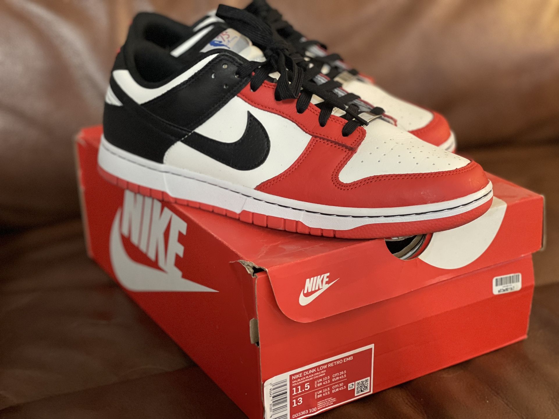 Slight used The Nike Dunk Low EMB NBA 75th Anniversary Chicago Size 11.5 Low Ballers will be ignored Thanks for viewing