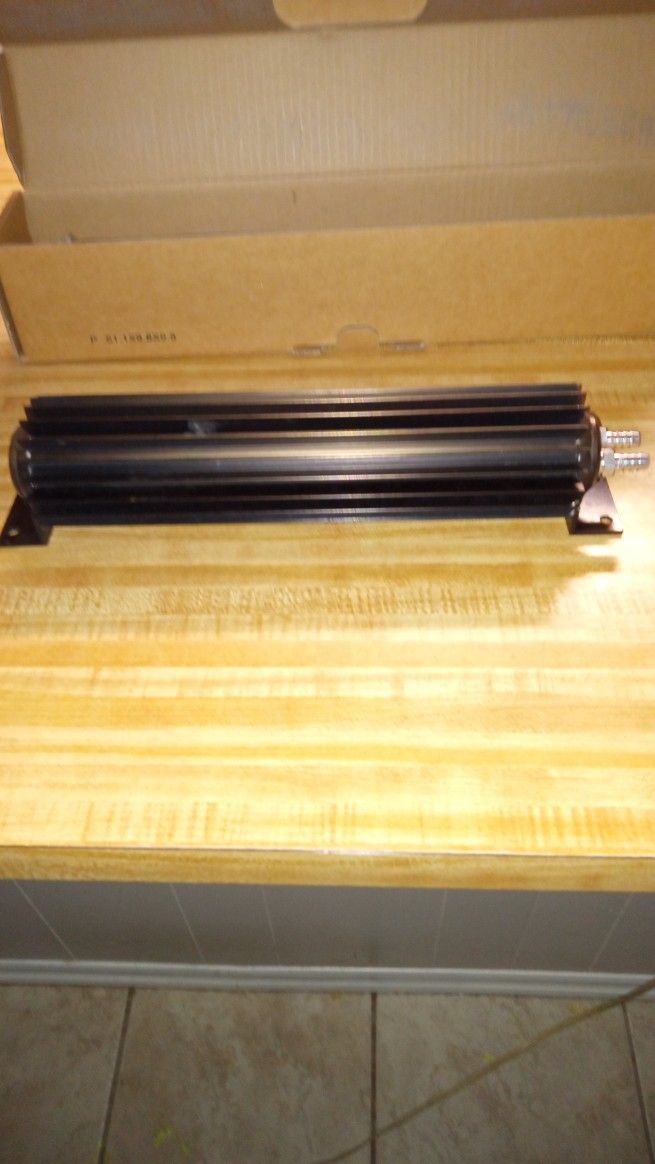 Here is a summit racing heat sink transmission cooler 14.25 in Long, with fittings already installed, it's in perfect brand new condition, a must here in the Phoenix area, designed to install anywhere on the vehicle where it's hard to fit, also can be installed in the front by the radiator very lightweight, we'll make a big difference could save your transmission!$45 and I will supply transmission cooling line which they do not come with! So 45 firm less than half price.
