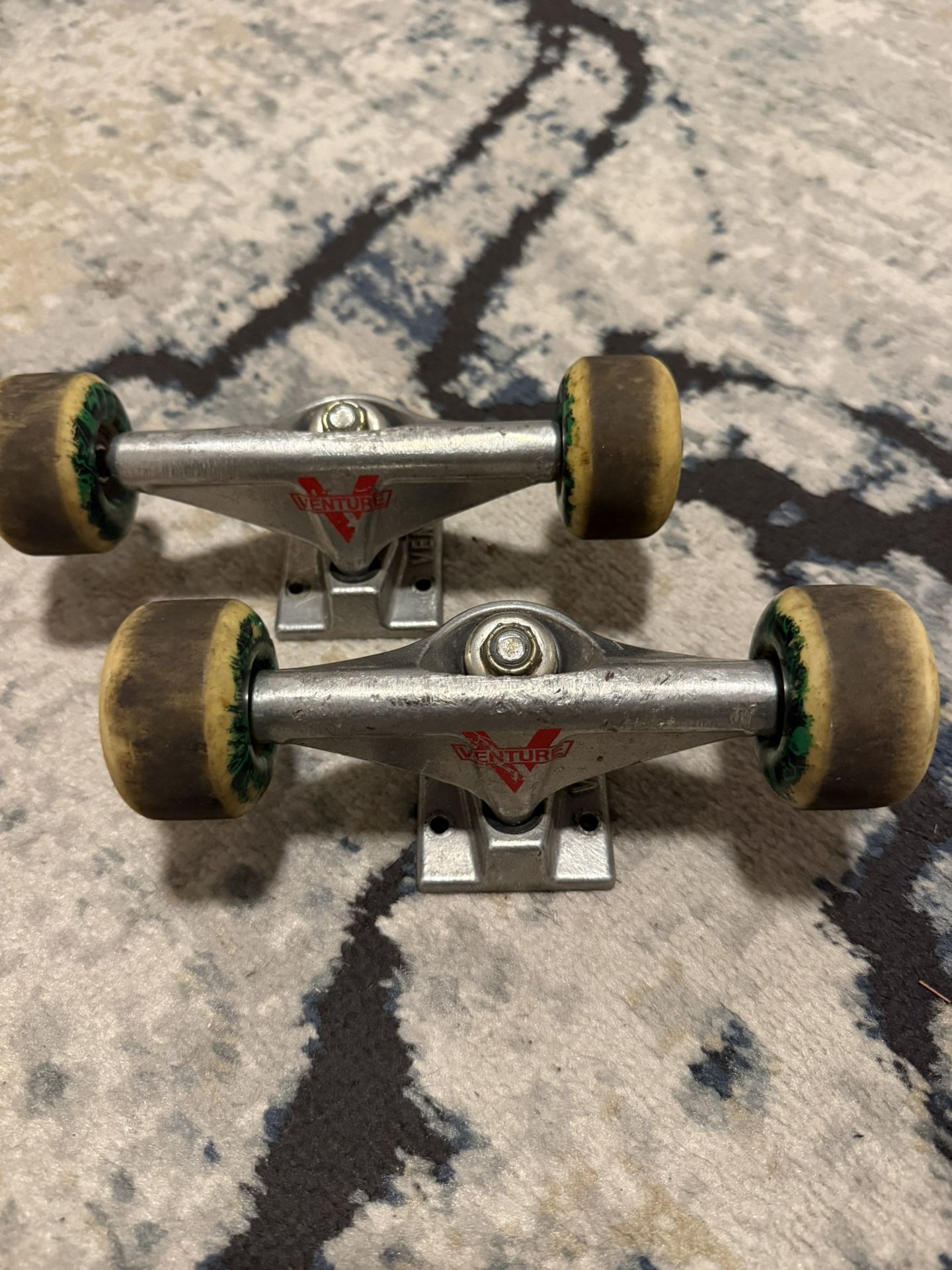 In good condition venture skateboard trucks with ATM wheels, axel size 7.625