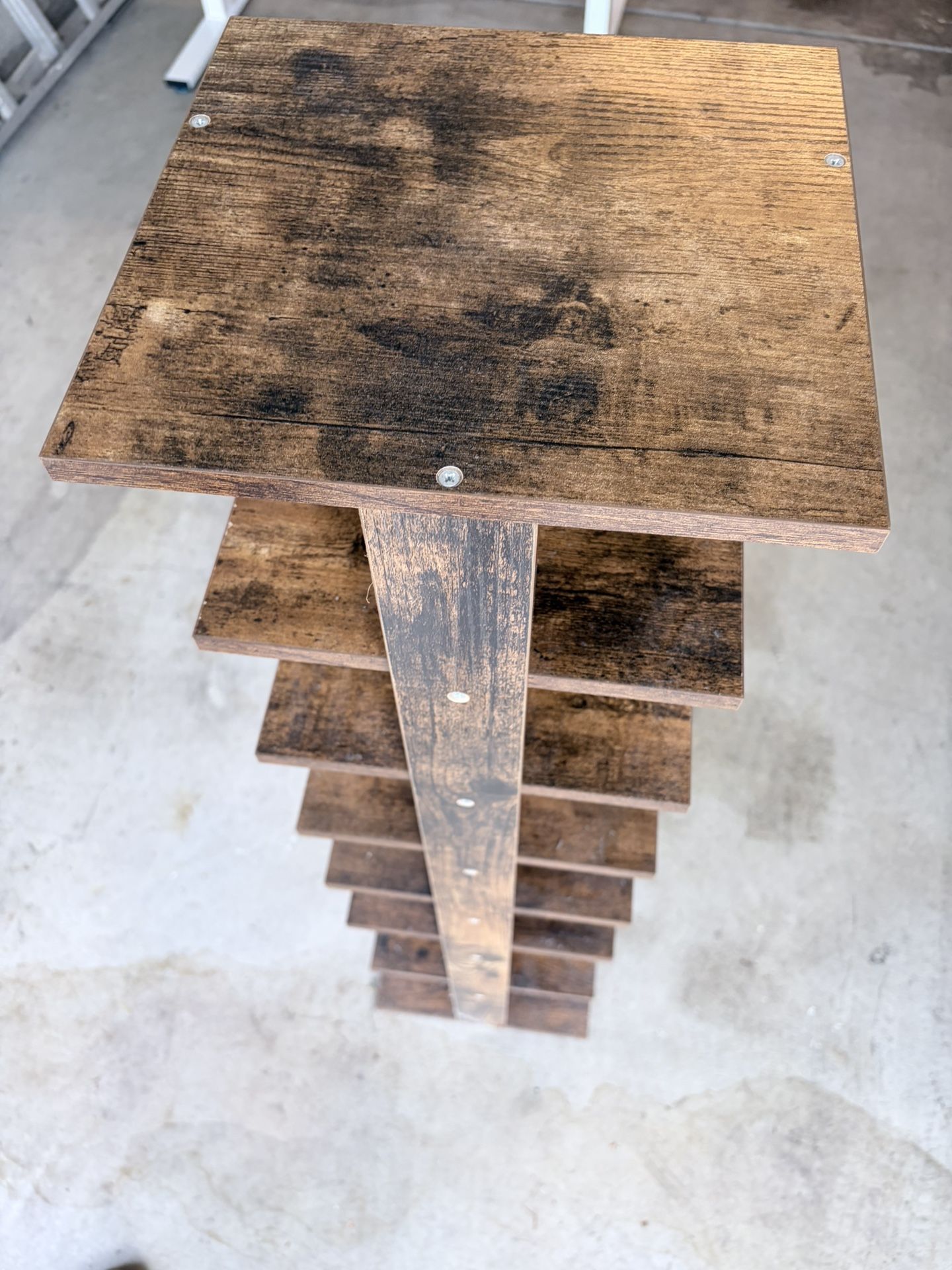 Modern vertical shoe rack with a slim, space-saving design. Holds multiple pairs of shoes while taking up minimal floor space—perfect for apartments, closets, entryways, or bedrooms. • 7 sturdy shelves • Dark wood finish • Compact vertical footprint