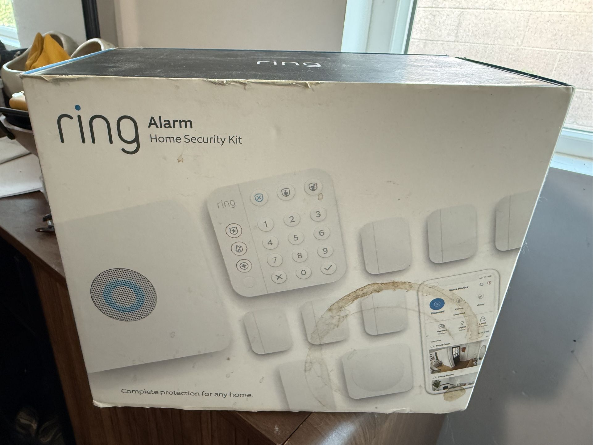 10 piece home security and alarm kit. New in box, never used. Includes 1x base station, 1x alarm keypad, 1x range extender, 1x motion detector, 6x contact sensor