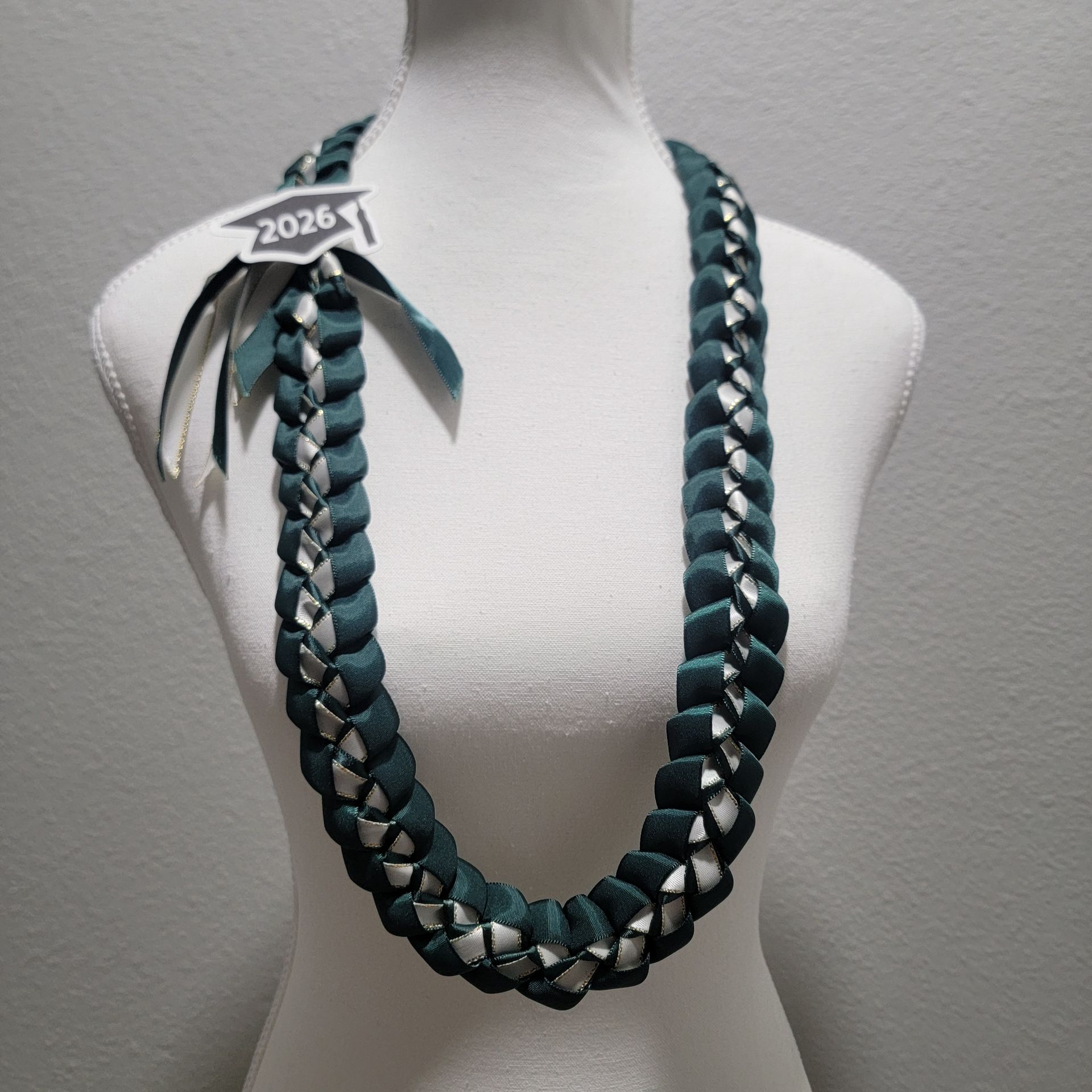 Taking pre-ordered for customized grduation lei. This lei is single braided with ribbon accent and made with 5/8 and 3/8 satin ribbons. Lei measures 36" long and 1.5" wide decor with 2023 graduation hat cardstock. Pick up to 2 colors. The primary color is the base ribbon (5/8). The secondary color is the accent ribbon (3/8). Pick up location Pomona/Phillips Ranch or Riverside. Please check out my other leis