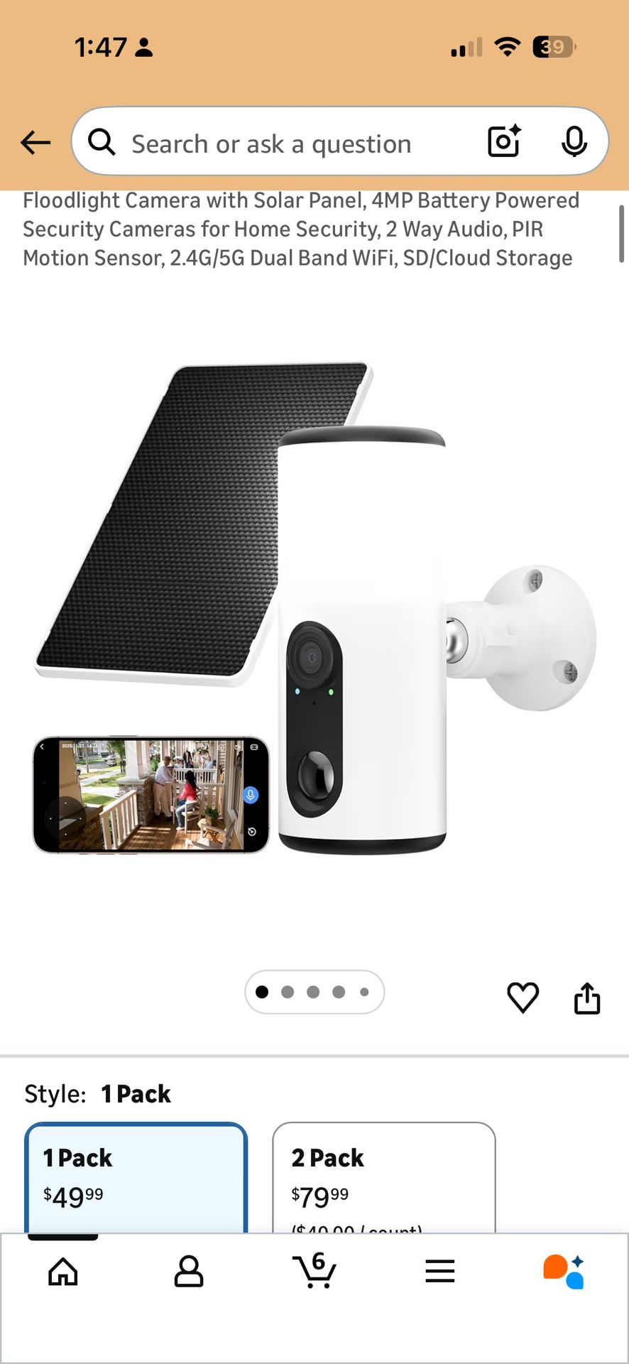 New Regular price $49.99 Pick up Otay Mesa Recommended Uses For Product Outdoor Security Brand ARCCTV Model Name F2 Connectivity Technology Wireless Special Feature 2-Way Audio, HD Resolution Indoor/Outdoor Usage Outdoor Detachable Solar Panel & Sustainable Power: Includes an external high-efficiency solar panel for continuous eco-friendly charging. The rechargeable battery maintains operation without wiring, with panel placement flexibility for optimal sun exposure. 4MP Ultra HD Resolution & Smart Motion Recording: Capture crystal-clear 2560x1440p footage when motion is detected. Advancedinfrared night vision ensures clear monitoring in complete darkness, with automatic floodlight activation for enhanced visibility anddeterrence. Smart PIR Motion Detection & Instant Alerts: Advanced PIR sensor with AI analysis accurately identifies people, vehicles, and animals. Receive real-time notifications with snapshots via the ARCCTV app, with customizable detection zones. Dual-Band WiFi & Clear Two-Way Audio: Maintains stable connection on both 2.4GHz and 5GHz networks. Features noise-canceling microphone and speaker for clear communication with visitors or warning off intruders. Flexibie Storage Options: Save footage locally using a micro SD card (up to 256GB,not included) at no cost, or choose optional cloudstorage with subscription plans for enhanced features and remote backup. Cloud storage requires separate subscription payment.