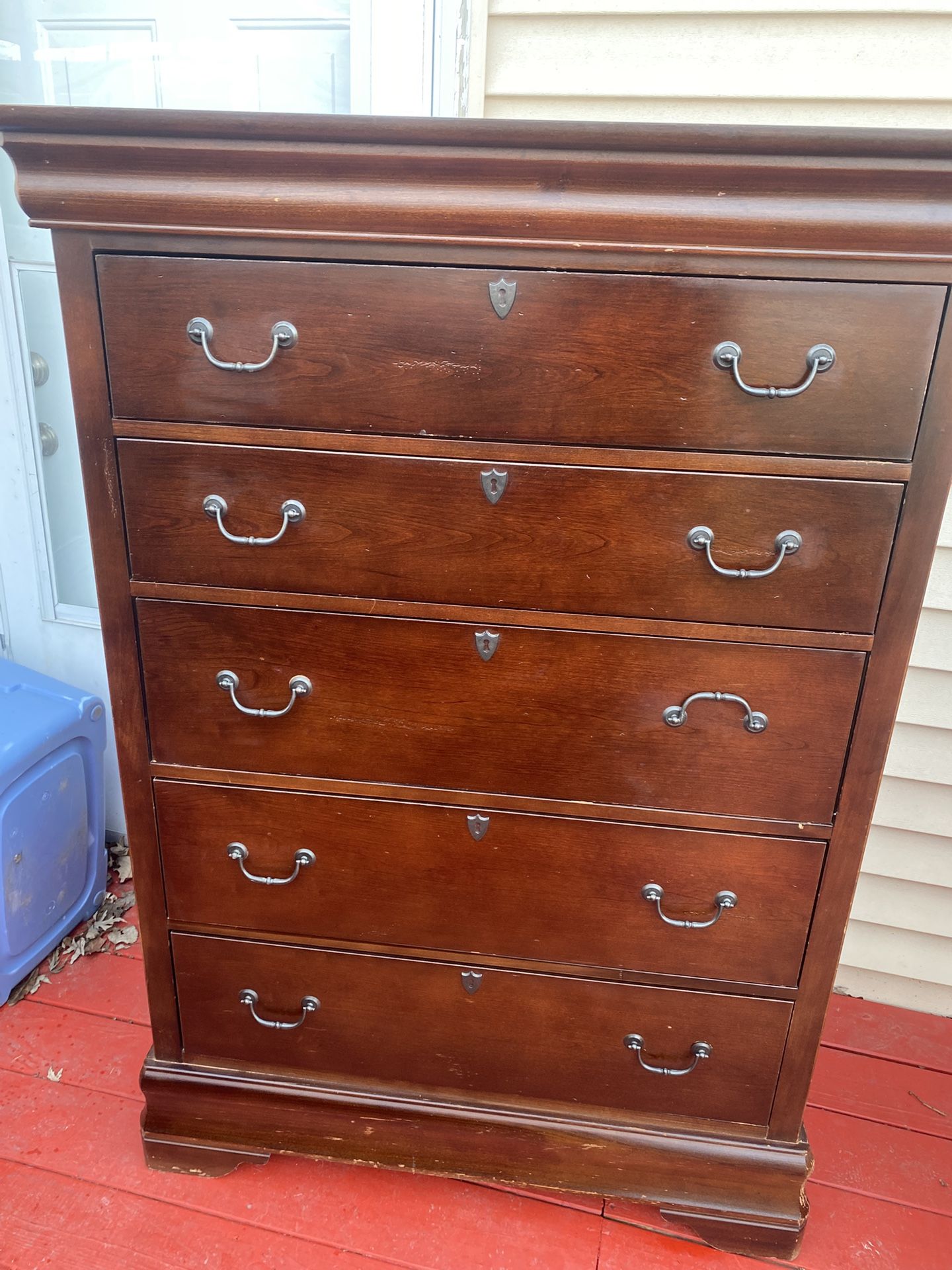 Tall Dresser solid wood with 5 Drawers 55 1/2 inches tall. 39 1/2 inches wide. 19 1/2 inches Deep in good condition. Cajonera con 5 cajones en buenas condiciones