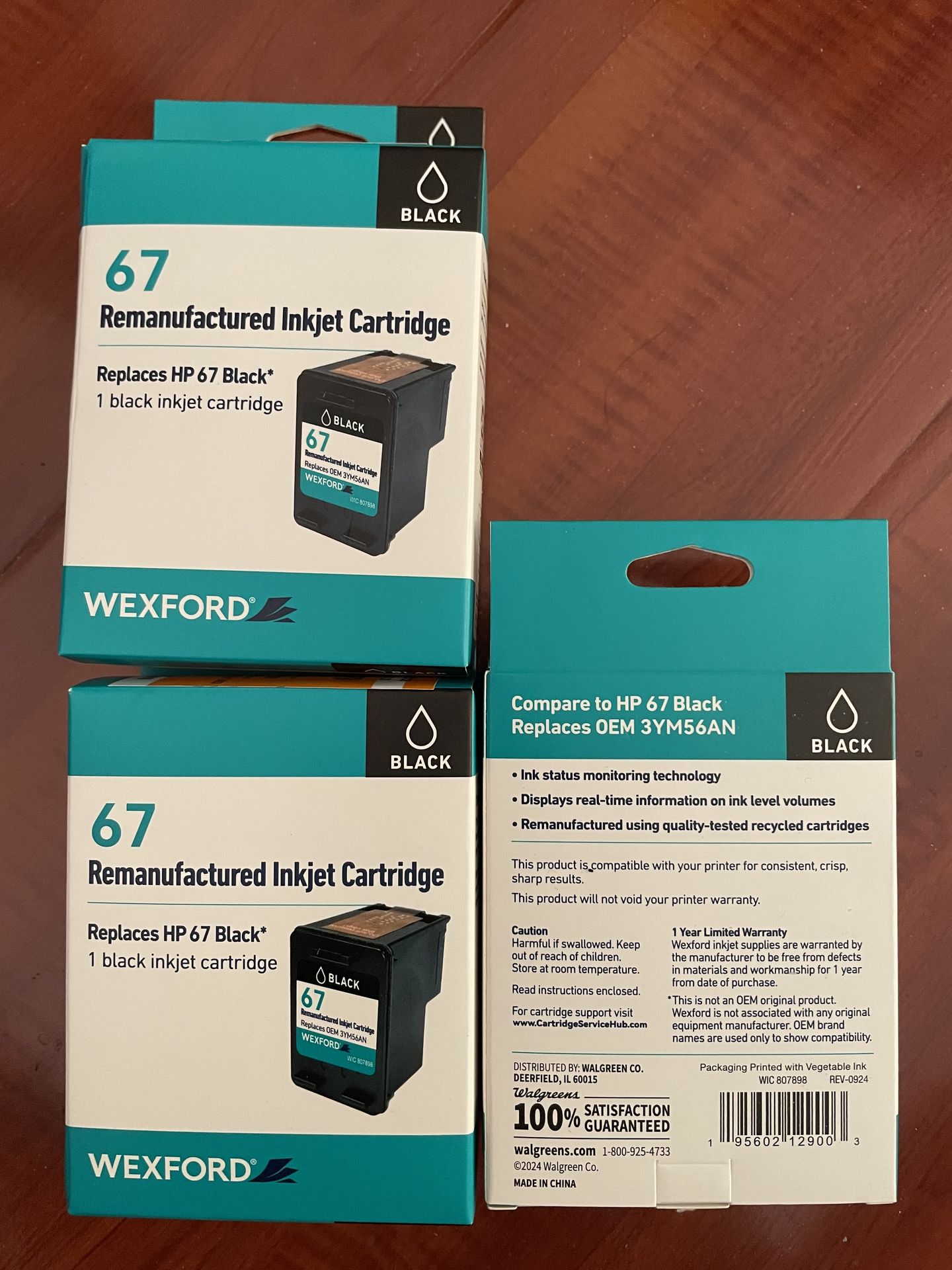 3 pieces available $10 each WEXFORD Inkjet Cartridge, Replaces HP 67, Black - 1 Ink Cartridge