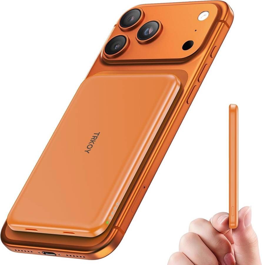 new for Magsafe Portable Charger,5000mAh Slim Wireless Magnetic Power Bank with USB C Charging,Travel Essential for Magsafe Battery Pack Compatible with iPhone 17/16/15/14/13/12 Series,Cosmic Orange About this item Precise Magnetic Alignment, Rock-Solid Hold: This magnetic portable charger iPhone is designed for compatible with MagSafe, featuring a strong 15N magnetic force that instantly snaps onto your iPhone, keeping it firmly attached even when you're on the move. Whether you're on a call, snapping a selfie, or streaming video, it stays perfectly aligned for stable, uninterrupted charging. Compatible with iPhone 17/17 Air/17 Pro/17 Pro Max, for iPhone 16/16 Pro/16 Pro Max/16 Plus, for iPhone 15/15 Pro/15 Pro Max/15 Plus, for iPhone 14 Pro Max Plus, for iPhone 13/13 Mini/13 Pro/13 Pro Max, for iPhone 12/12 Mini/12 Pro/12 Pro Max, and MagSafe-compatible cases.(Not compatible with non-magnetic cases.) Slim & Portable — Power Without the Bulk: Bulky power banks just don't fit your active lifestyle. That's why we designed the W5 for MagSafe portable charger to keep you moving. Weighing just 120g and only 11.8mm thick, W5 iPhone battery power bank doesn’t block your camera or get in the way. Snap photos, game, or take calls while charging — all without the hassle of awkward bulk. Plus, crafted with a tough yet lightweight shell, it’s impact-resistant, TSA-approved, and sleek enough for daily use.