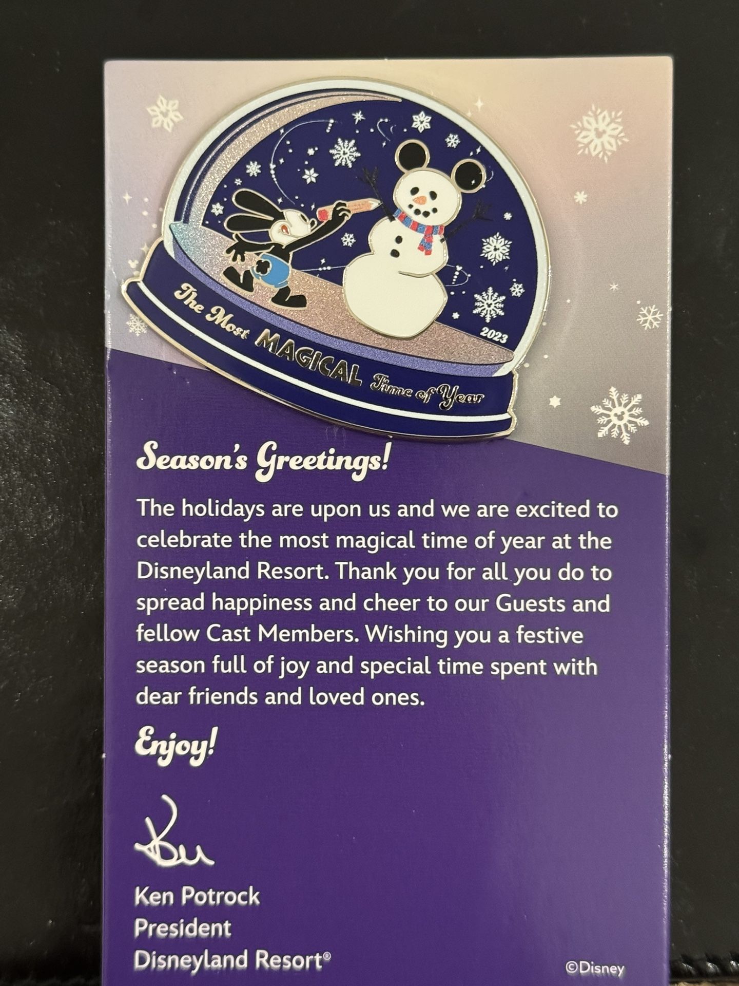 Disney "Most Magical Time of Year" Oswald Snowman Snow Globe Cast Member Pin new