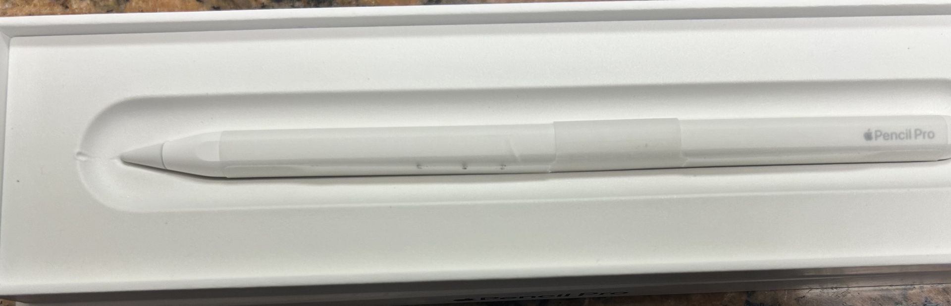 Apple Pencil Pro. Not Used. New. Outside film packaging is missing but the pencil was never used. Bought as a Christmas gift but was not compatible with the device and the return period was missed.