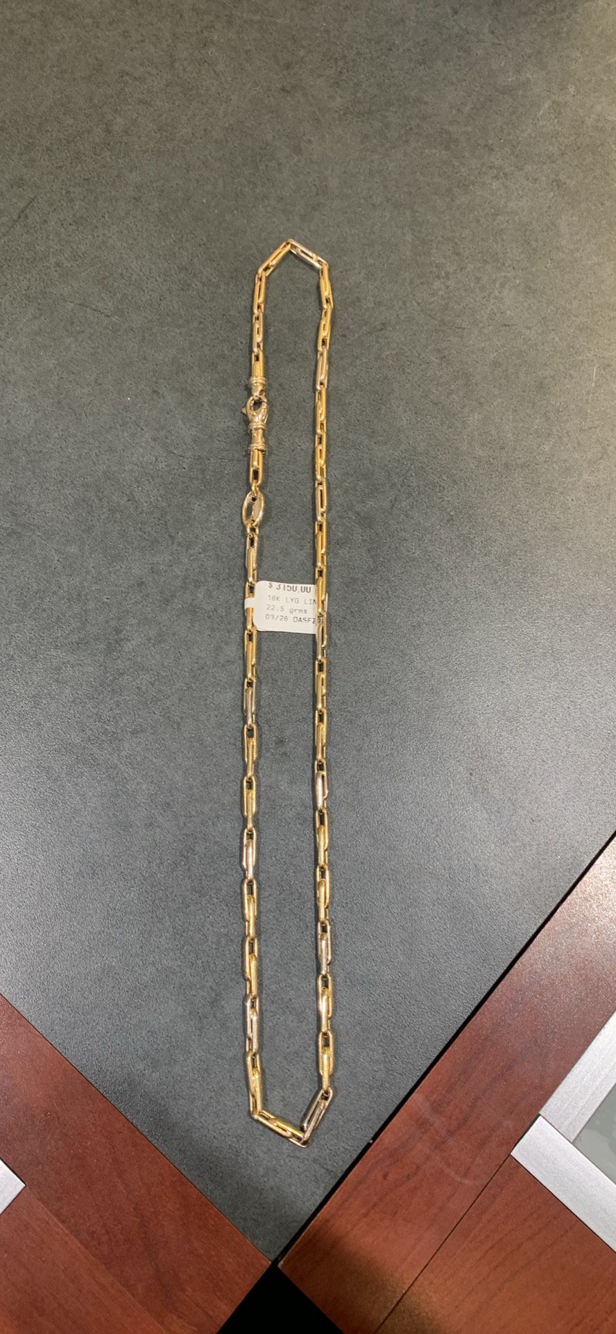 Selling a 18k Necklace Length is 22in. Weight is 22.5 grams Priced at $3,150 plus tax Available for layaway only $315 down Located at Cash America on Normandy #2252