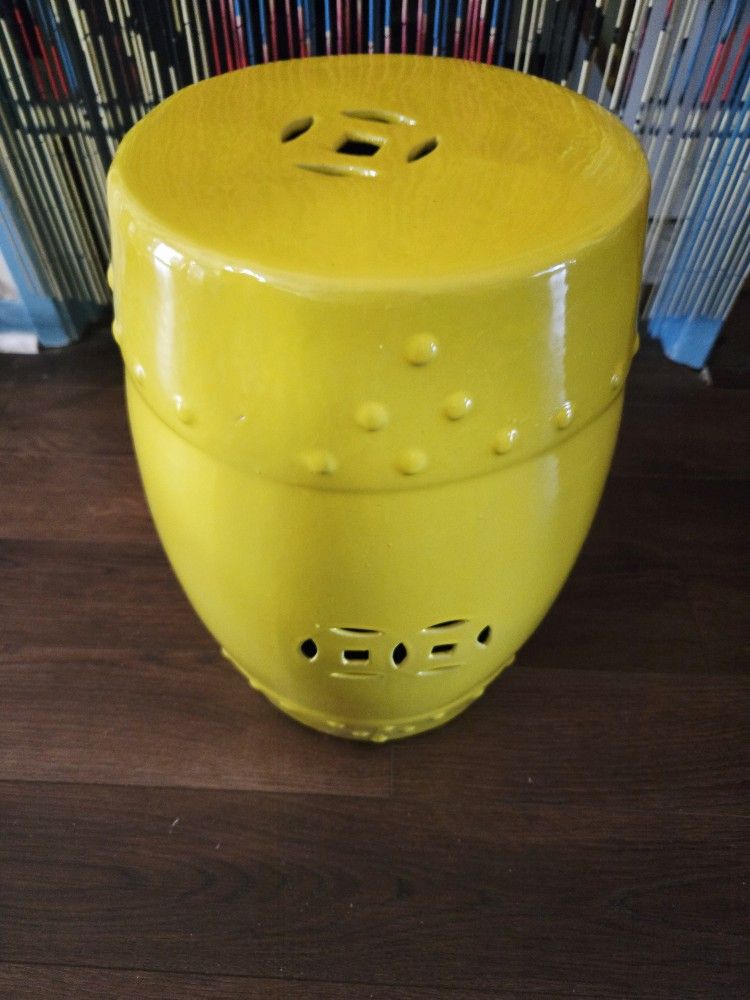 Vintage Yellow Ceramic Garden Stool Accent Stool Indoor Outdoor 18"×10.5"