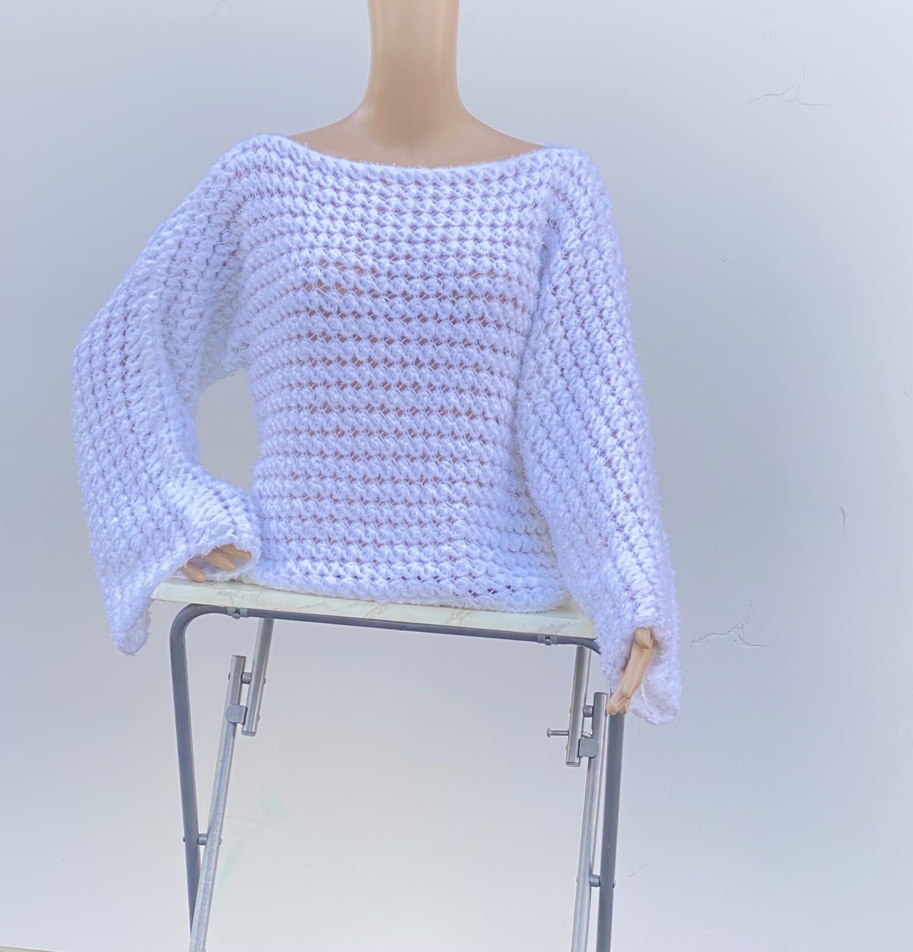 White blouse,winter blouse,knitting blouse,handmade blouse