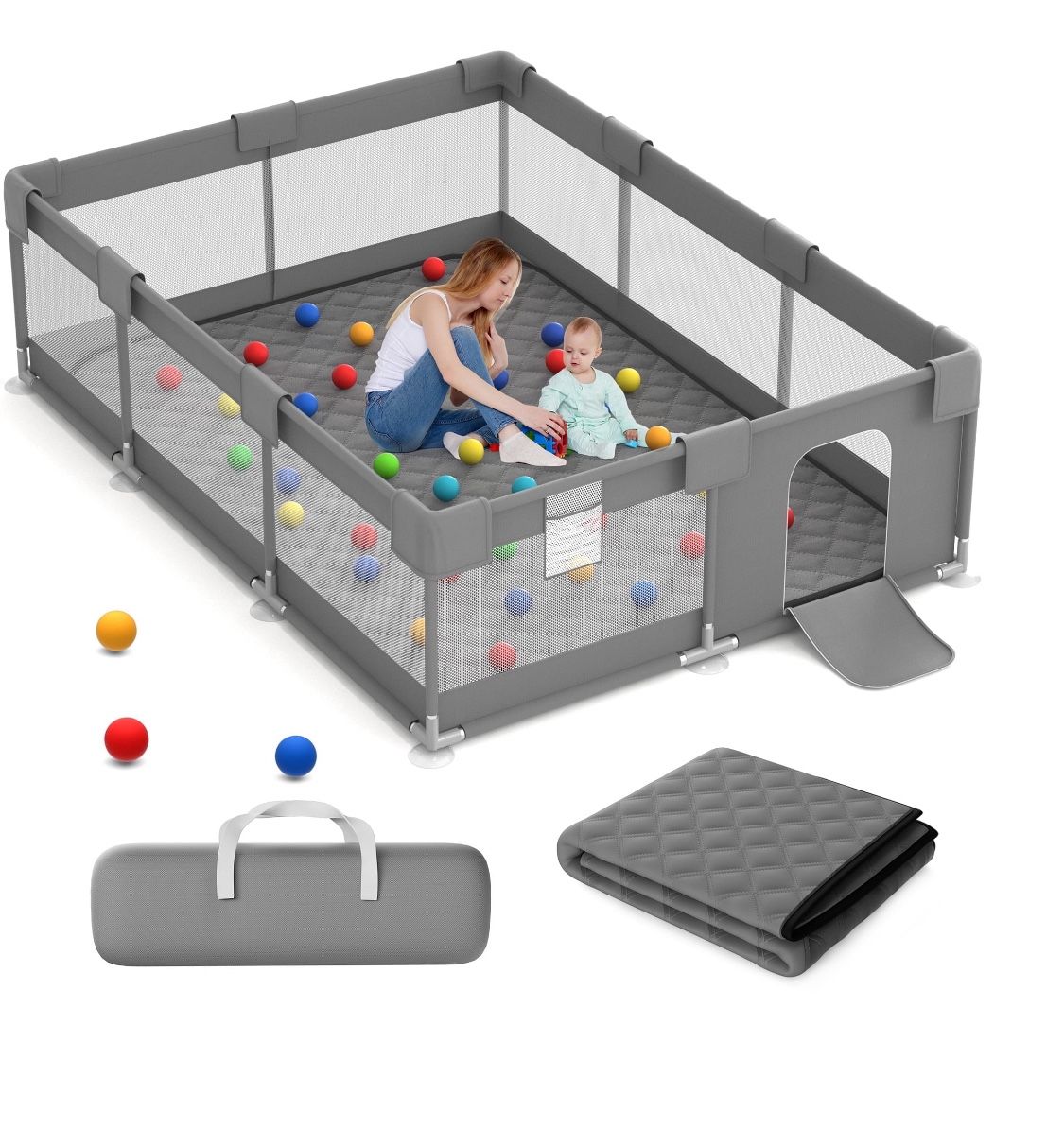 Babyeap Large Baby Playpen with Mat,71"x50"Playpen for Babies and Toddlers,Baby Play Yard Baby Fence Play Area Indoor Outdoor,Dark Gray