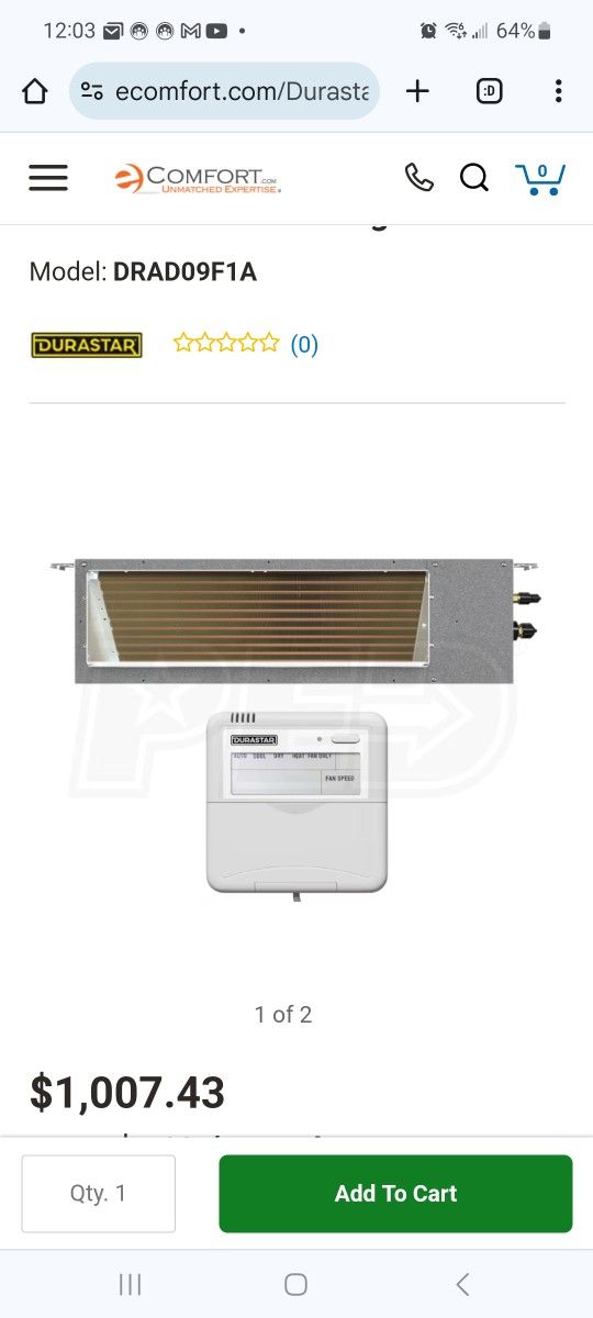Slim Mini Split Ducted Indoor Heating/cooling Unit DRAD09F1A