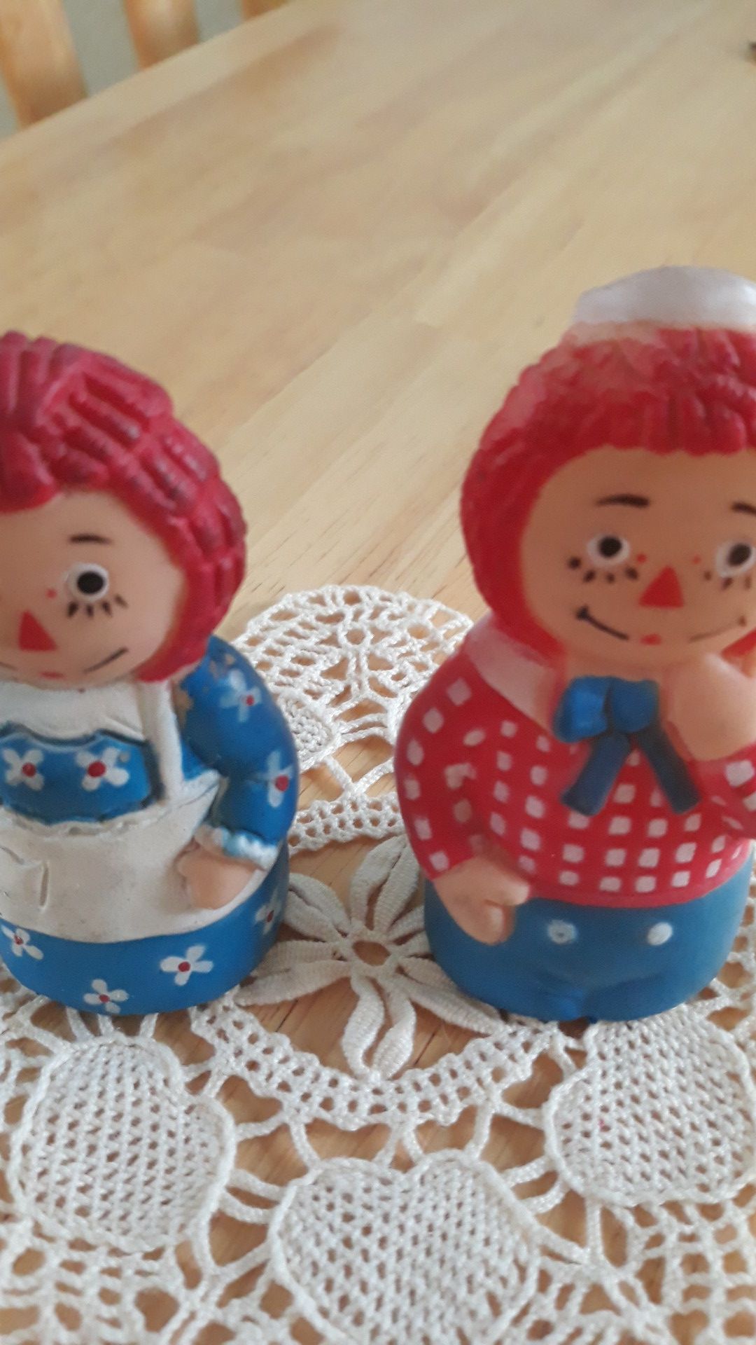 These were my grandmas. They are over a hundred years old or whenever they were produced at that time. She's long passed away so they have to be about a hundred years. She gave them to me. These are rubber finger puppets to add to your precious collection of Raggedy Ann and Andy. No tears