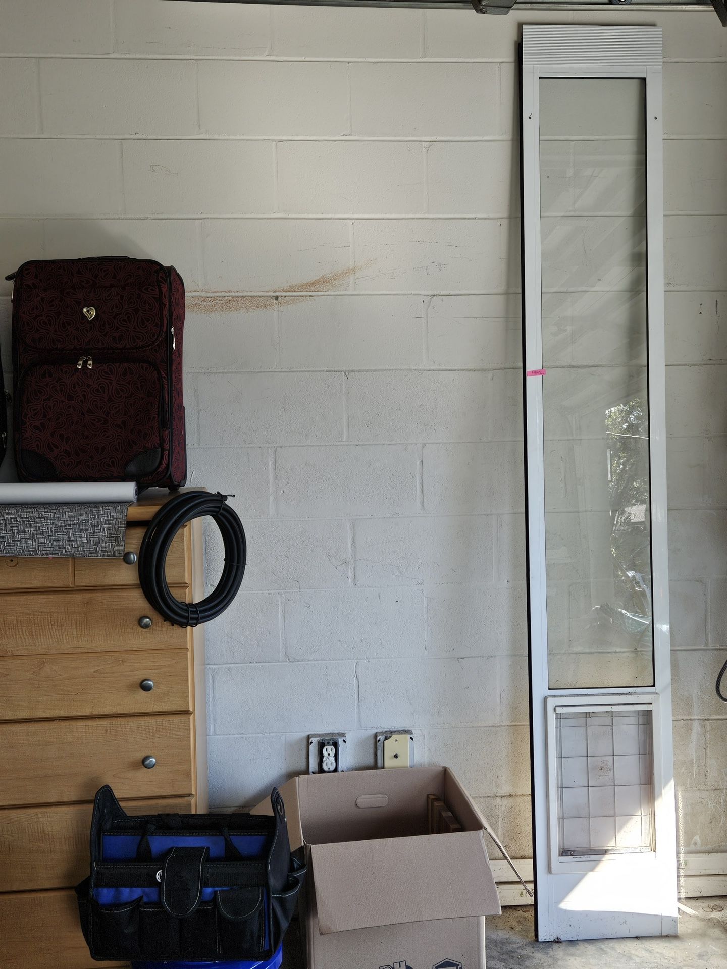 Great condition. 60 pound dogs or larger. For an 8-foot slider. Has an adjustable spring panel at the top. Sorry, no delivery. Local pickup only. Moving sale. Check out our other items!