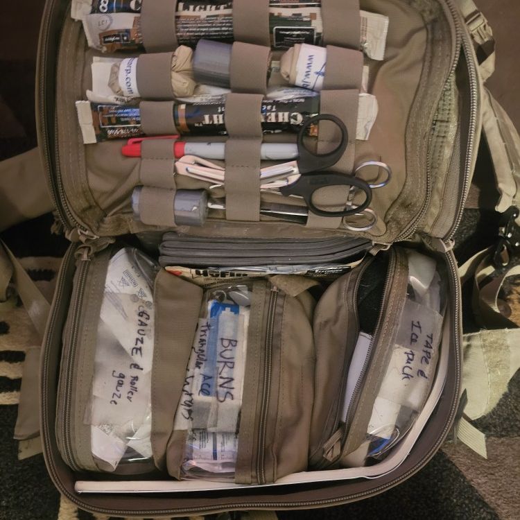 A couple years old medbag fully stocked. Ive mainly used it as a secondary medbag for running and hiking. Has not been abused in the field by me. Medical gear stocked over 200 dollars as I don't need it. Everything you need to control bleeding and wrap a limb with bandages and stabilize your patient. Asking $200 for the whole thing. Message for details.