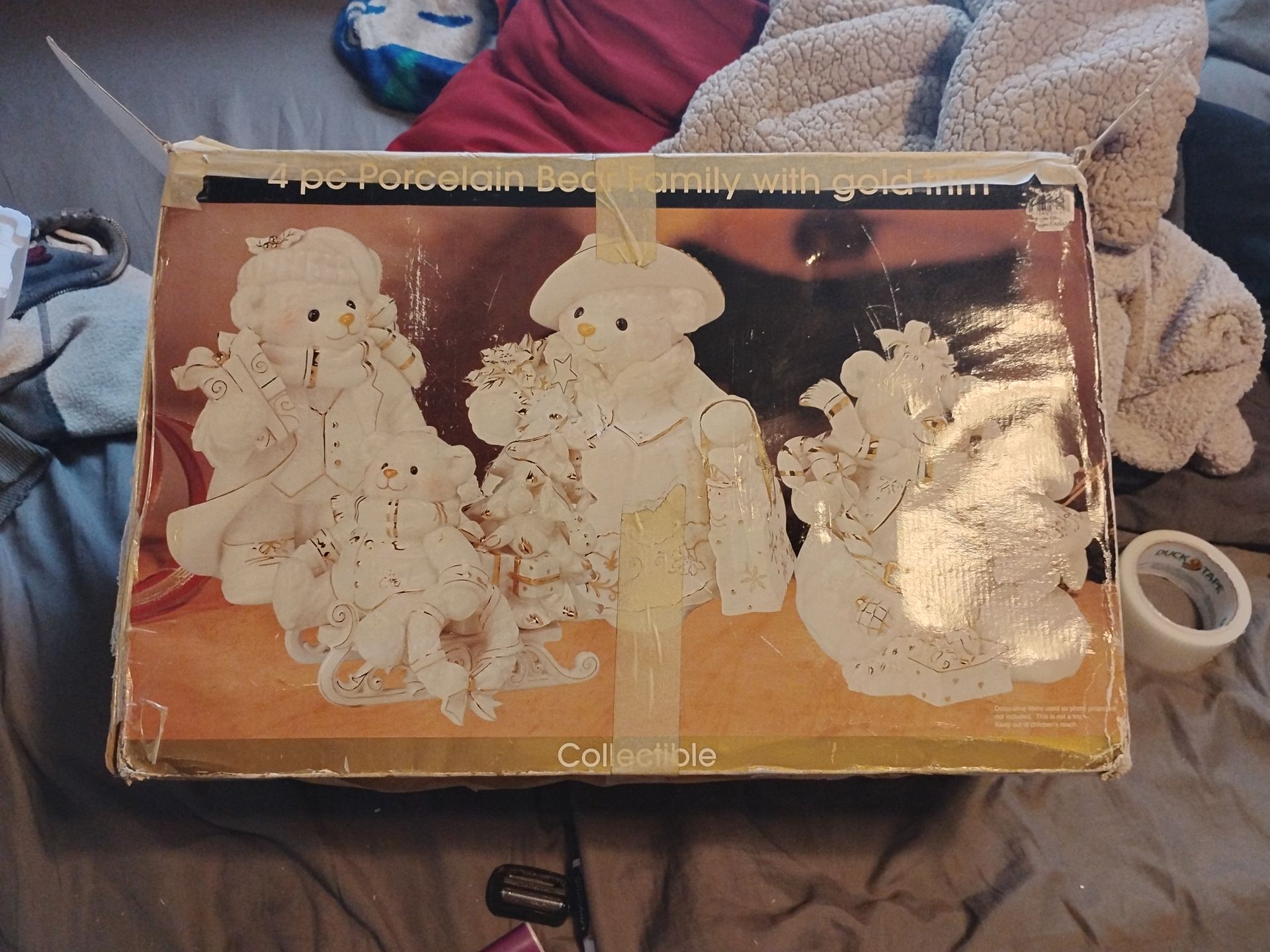 4pc Christmas Porcelain Bear Set, no cracks almost new