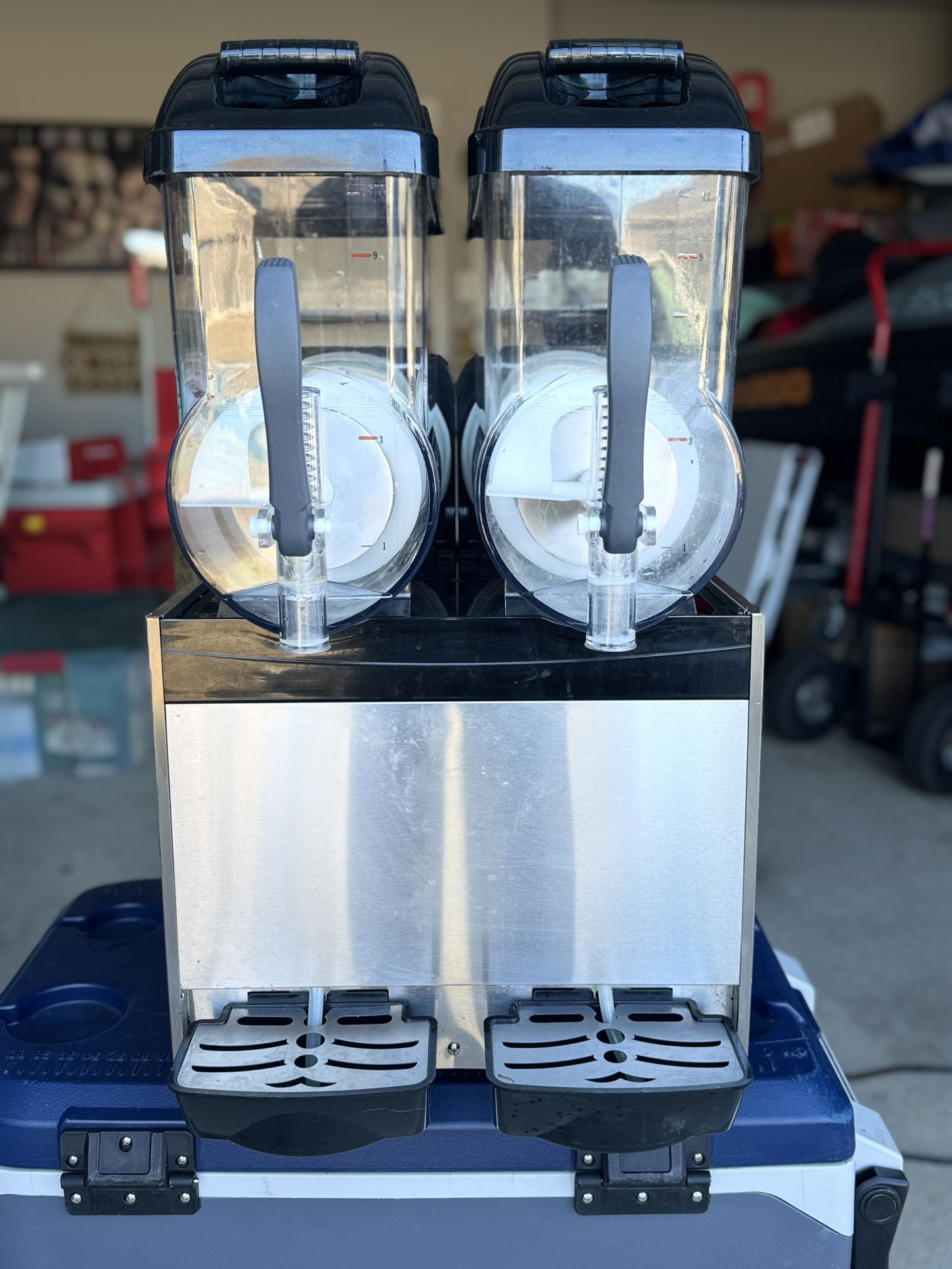 Commercial Dual Frozen Drink / Slush Machine – $700 OBO Selling a commercial dual-bowl frozen drink machine in great condition. Perfect for bars, events, food trucks, or parties. • Large Capacity: Dual 12L (3.2-gallon) bowls – can produce up to 100 slushies per hour (250ml each) • Commercial Grade: 700W power with a professional compressor for fast, consistent freezing • Durable Build: Stainless steel construction – corrosion-resistant, rust-proof, and easy to clean • Easy to Use: Simple control panel, self-opening lids, built-in LED lighting • Low Maintenance: Self-cleaning function, removable drip tray, and external water tank • Great for: Margaritas, daiquiris, slushies, frozen cocktails, and more Missing one of the Light cables but a replacement is $5