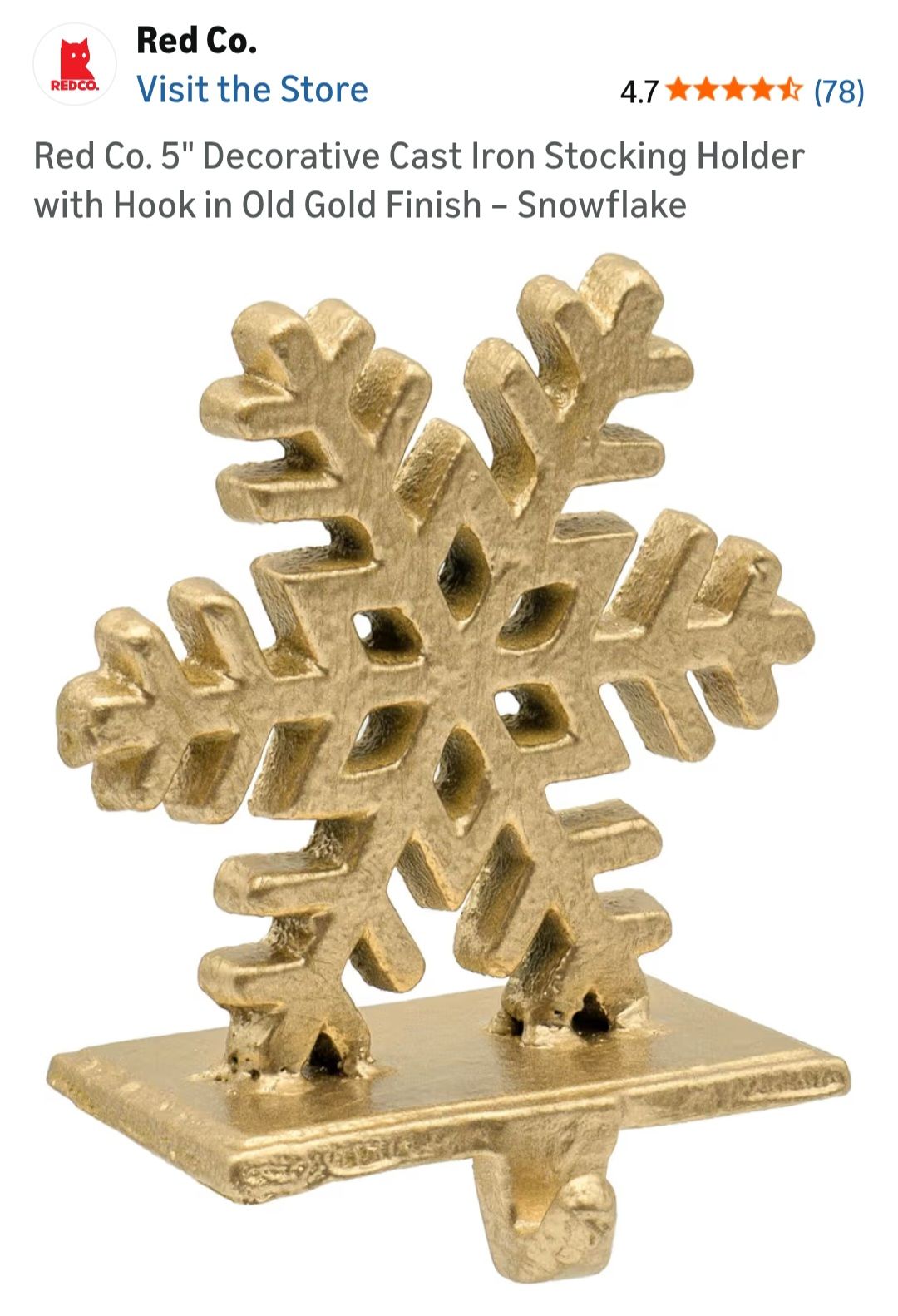 Red Co. 5" Decorative Cast Iron Stocking Holder with Hook in Old Gold Finish – Snowflake