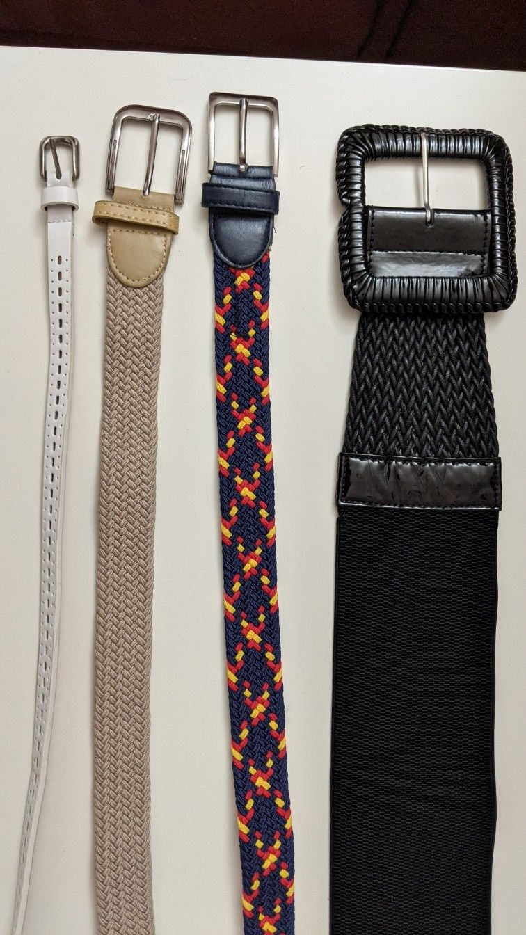 4 Belts Set, 3 Expandable and 1 White Leather Belt