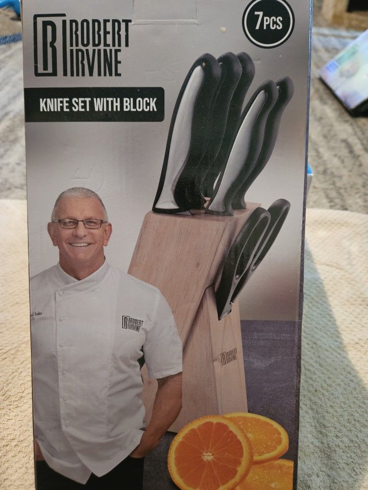 ROBERT IRVINE 7 PC KNIFE SET W/ WOOD BLOCK