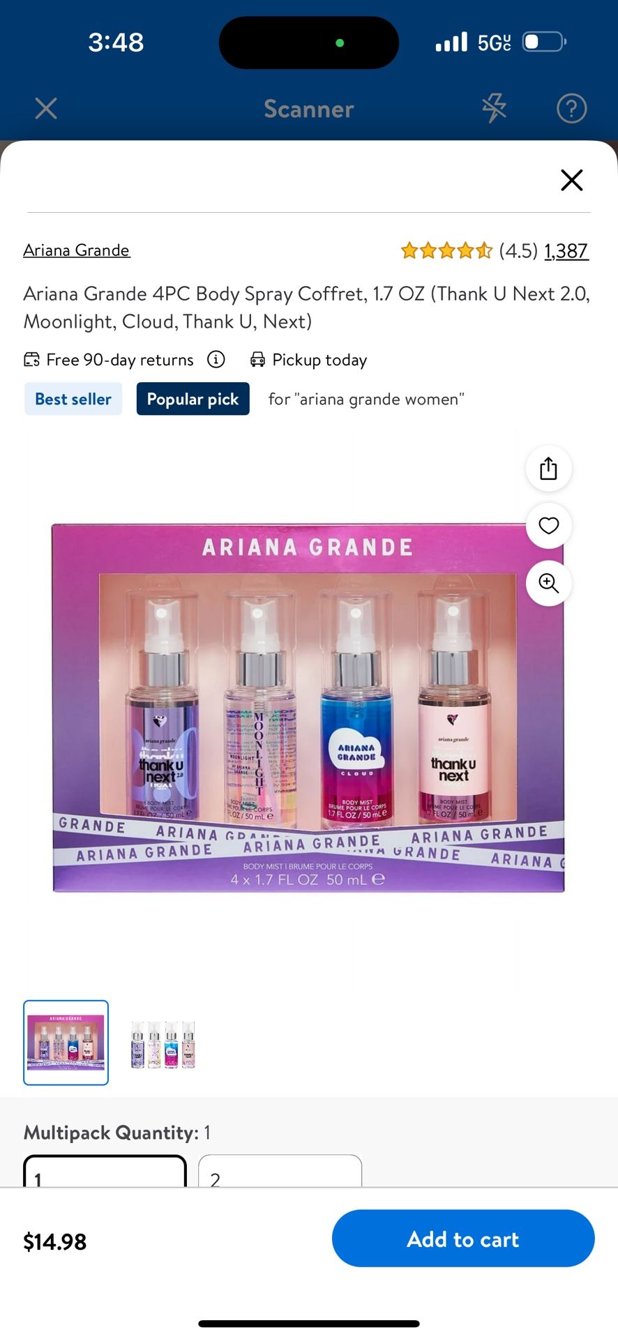 Ariana Grande 4PC Body Spray Coffret, 1.7 OZ (Thank U Next 2.0, Moonlight, Cl...
