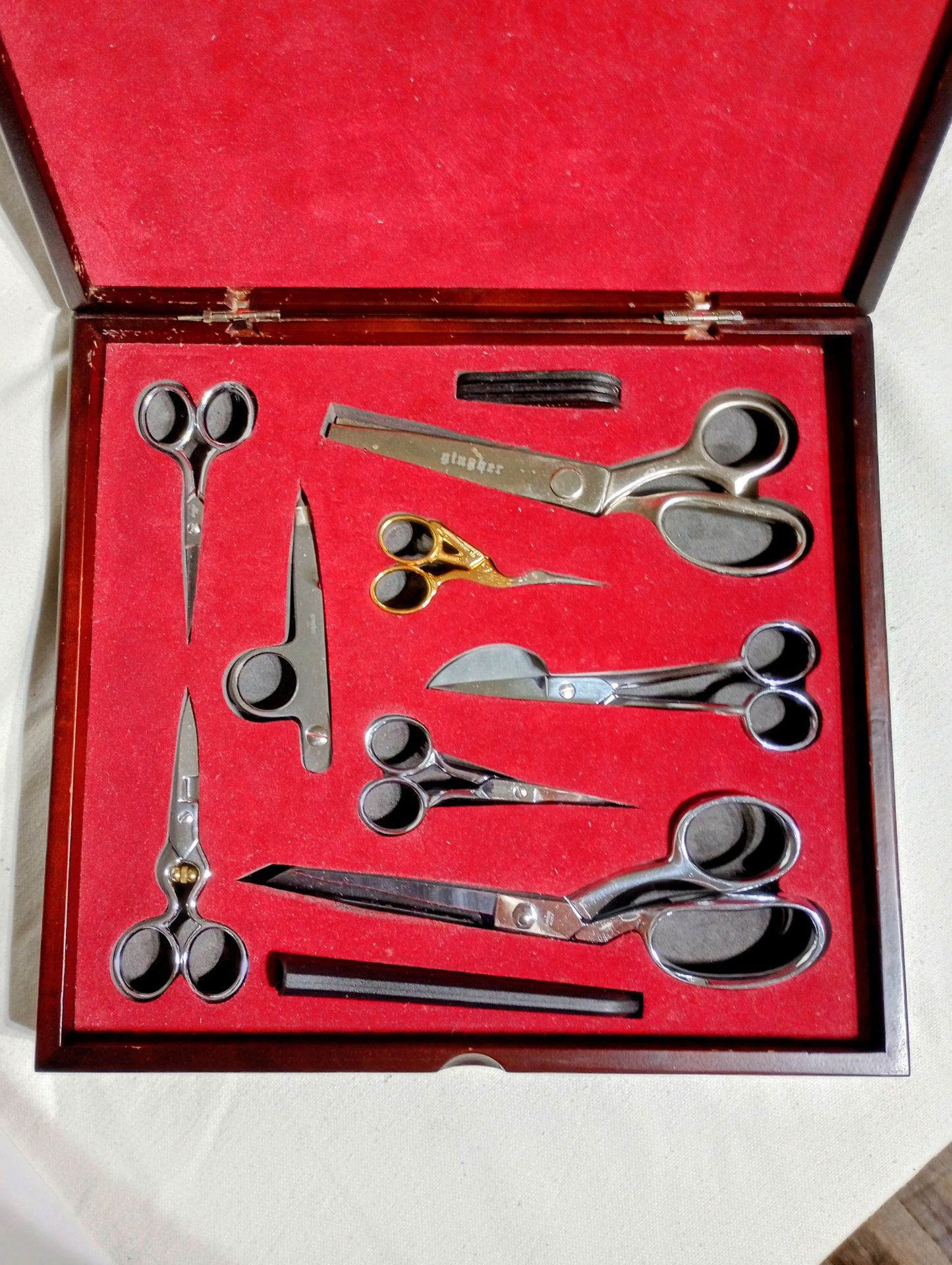 Rare find...! The best sewing scissor brand often cited is Gingher for traditional quality, longevity and clean cuts. Includes 8 specialized precision tools designed specifically for needle arts and crafts. Very little use. Some scissors never used. All in excellent condition. Comes in original box and includes a name plate. This is a no return item. Local West Palm Beach, FL. pickup and cash sale only.