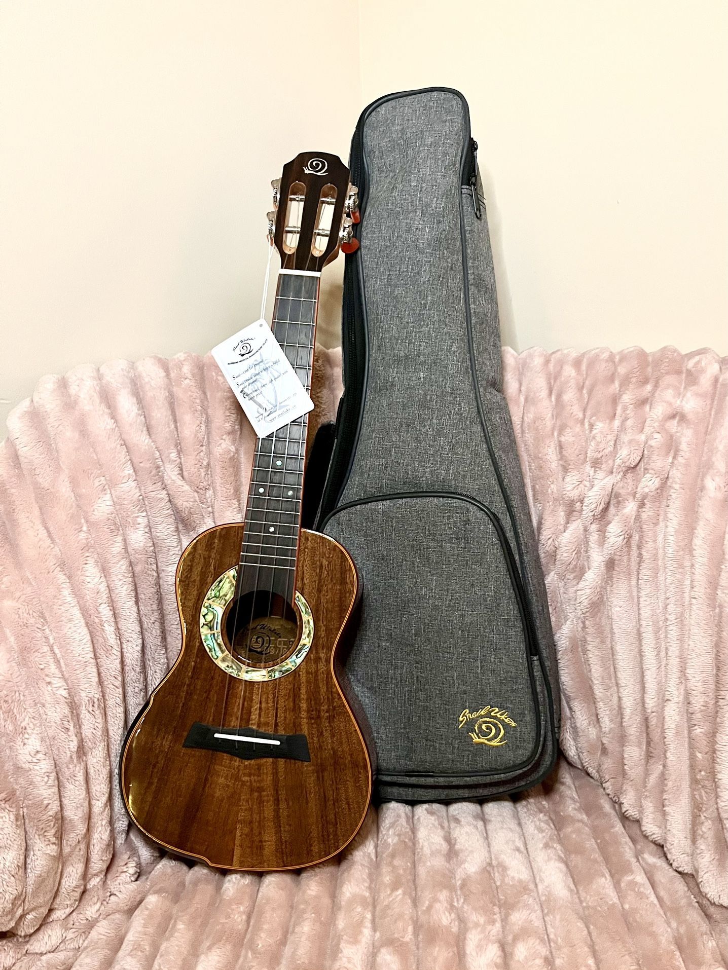 Purchased in March 2025 for $770 (tax included). Bought directly from Snail in the UK. Paid nearly an additional $300 for the ukulele to pass through customs and for the UPS turnover process. Ended up paying more than $1,000 before I even got my hands on it. It’s beautiful. Sounds and plays fantastic. It is, without a doubt, the best ukulele I have ever owned. Unfortunately, I don’t play it. I learned that guitar is the love of my life,. I don’t like to accumulate excess things and feel sad that this poor baby is just sitting in a chair. I want this gem to go to a new home where someone will love it and play it everyday, like it deserves. Also comes with a matching gig bag and complementary picks. I tried to take pictures without glare, however there is some. Any white splotches are from my lights. The ukulele is in pristine condition, no signs of use. Below is the description of the ukulele straight from Snail’s website. Thank you. Created for professional musicians, the S60C combines visual elegance with truly exceptional sound. With a solid flamed acacia top, back, and sides, this concert ukulele delivers incredible warmth, clarity, and projection. The classical headstock adds a touch of sophistication, while the ebony fingerboard and bridge provide a smooth and responsive playing experience. A mahogany neck ensures stability and comfort, and premium D’Addario strings let every note sing. Specifications: Top: Solid Acacia Back & Sides: Solid Acacia Fingerboard & Bridge: Ebony Neck: Mahogany Strings: D’Addario A distinguished concert ukulele designed for demanding performers who seek uncompromising quality and expressive tone.