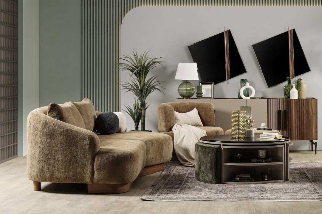 *The living room set includes 4 pieces; a sectional sofa, an armchair, and an ottoman *The sectional sofa consists of 2 Curved pieces.(Left and Right.) *Round ottoman *Round armchair *Available colors: Gray, Mocha, Teal Shop online at ornatehome.com. Enjoy unlimited item delivery for only $299. Explore our wide range of furniture options, including dining room sets, bedroom furniture, sectionals, sofas, recliners, sleeper sofas, rugs, wall art, mattresses, bedding, kids' room furniture, office furniture, vanities, bookcases, and much more. We proudly carry brands such as Ashley Furniture, Tempur-Pedic, Sealy, and Stearns & Foster.