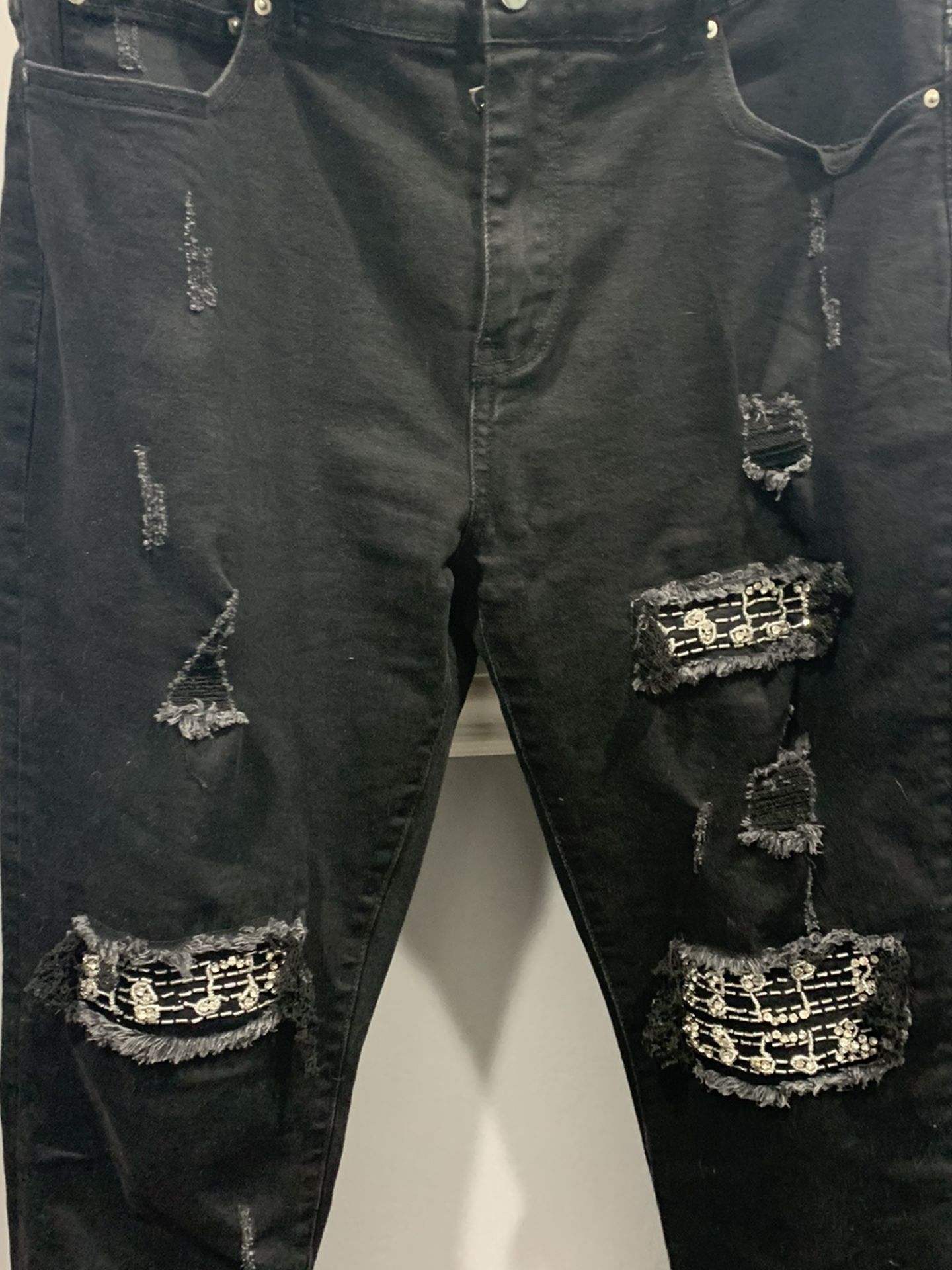 These Amiri’s are currently my favorite. Iced out music notes on the jeans w distressing. Literally such beautiful jeans. Worn them about twice. Condition 9.8/10. Bought them for 900. The pics do not do these jeans justice the way the music notes shine irl