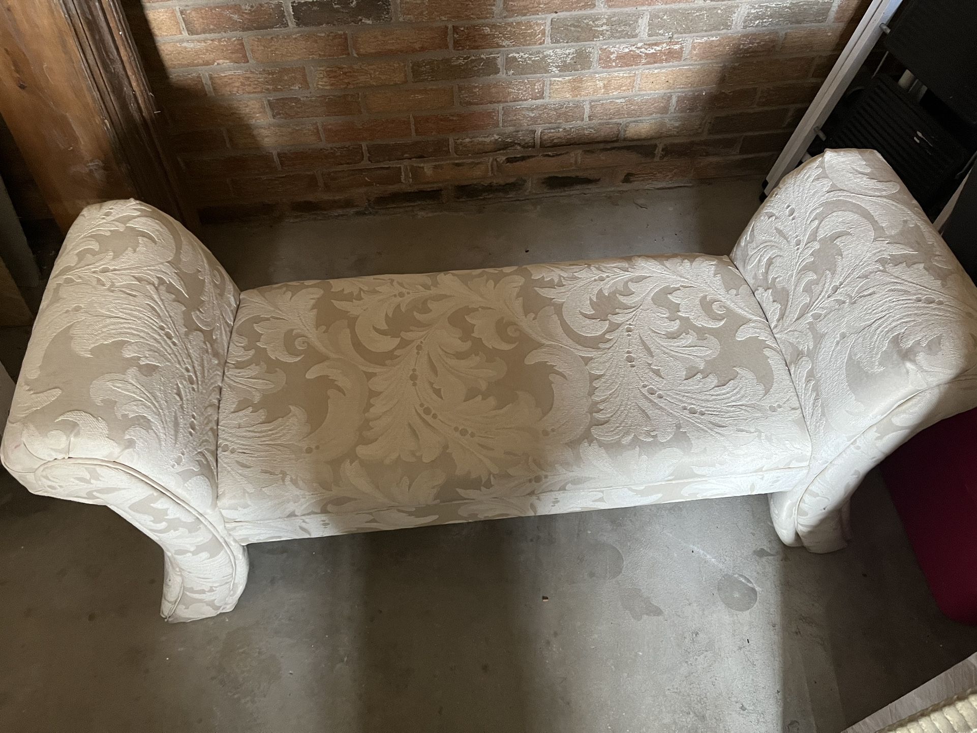 4Ft off white upholstered bench perfect for Entryway or foot of a bed.