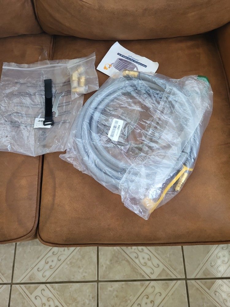New in the bag DIngbaayee 12ft. 3/8" ID Natural Gas Hose With Quick Connect.