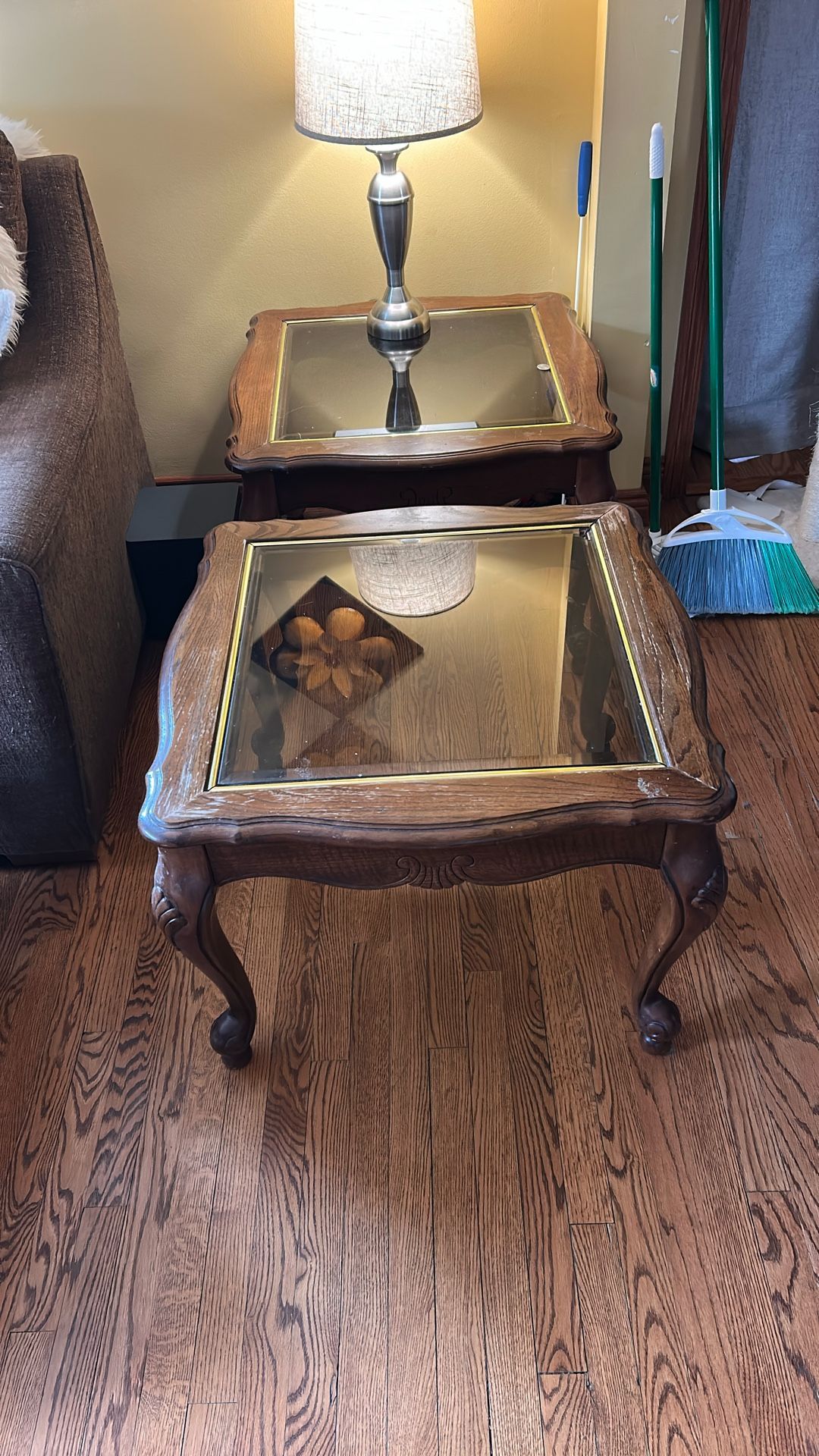 2 Sofa End Tables - Glass Tops - Sold As Pair