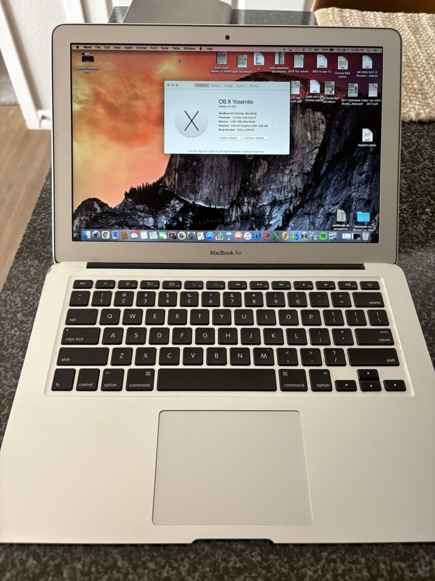 Very good condition! • 1.3 GHz Intel Core i5 • 4 GB RAM • Intel HD Graphics 5000 • Running OS X Yosemite