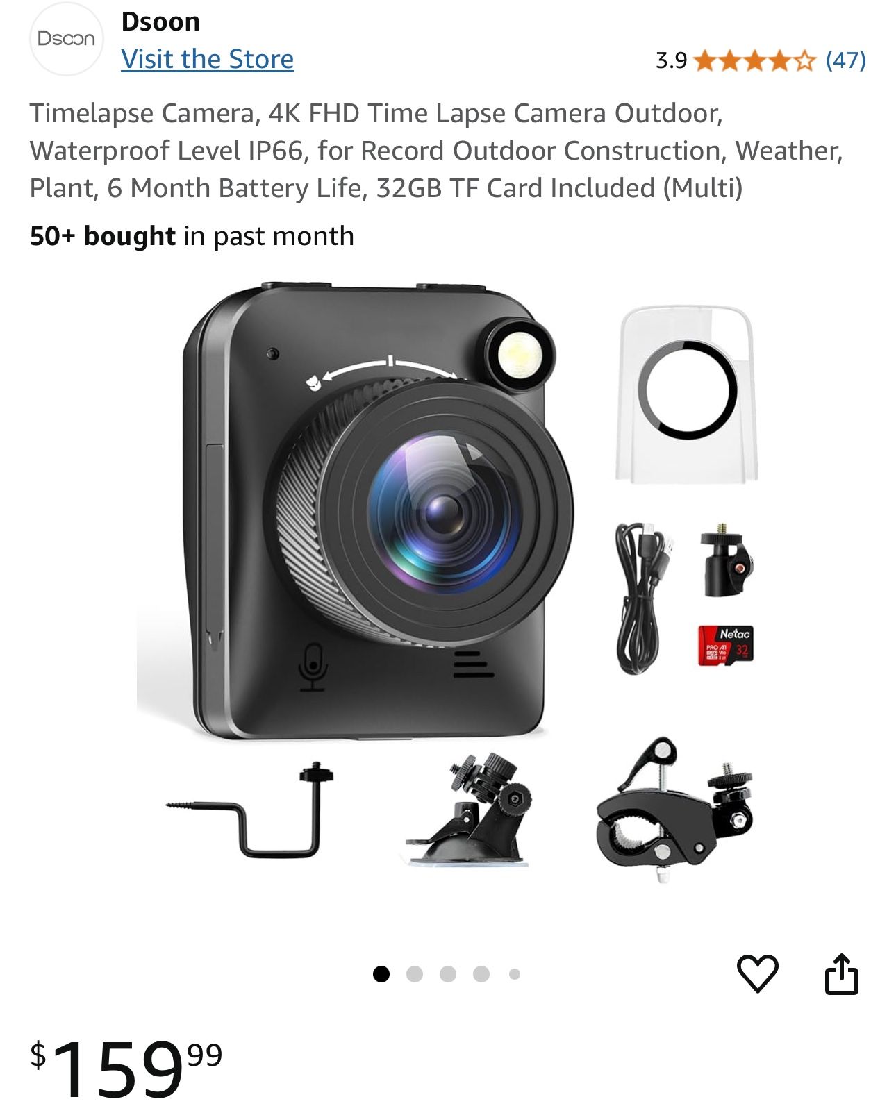 Timelapse Camera, 4K FHD Time Lapse Camera Outdoor, Waterproof Level IP66, for Record Outdoor Construction, Weather, Plant, 6 Month Battery Life, 32GB TF Card Included (Multi)