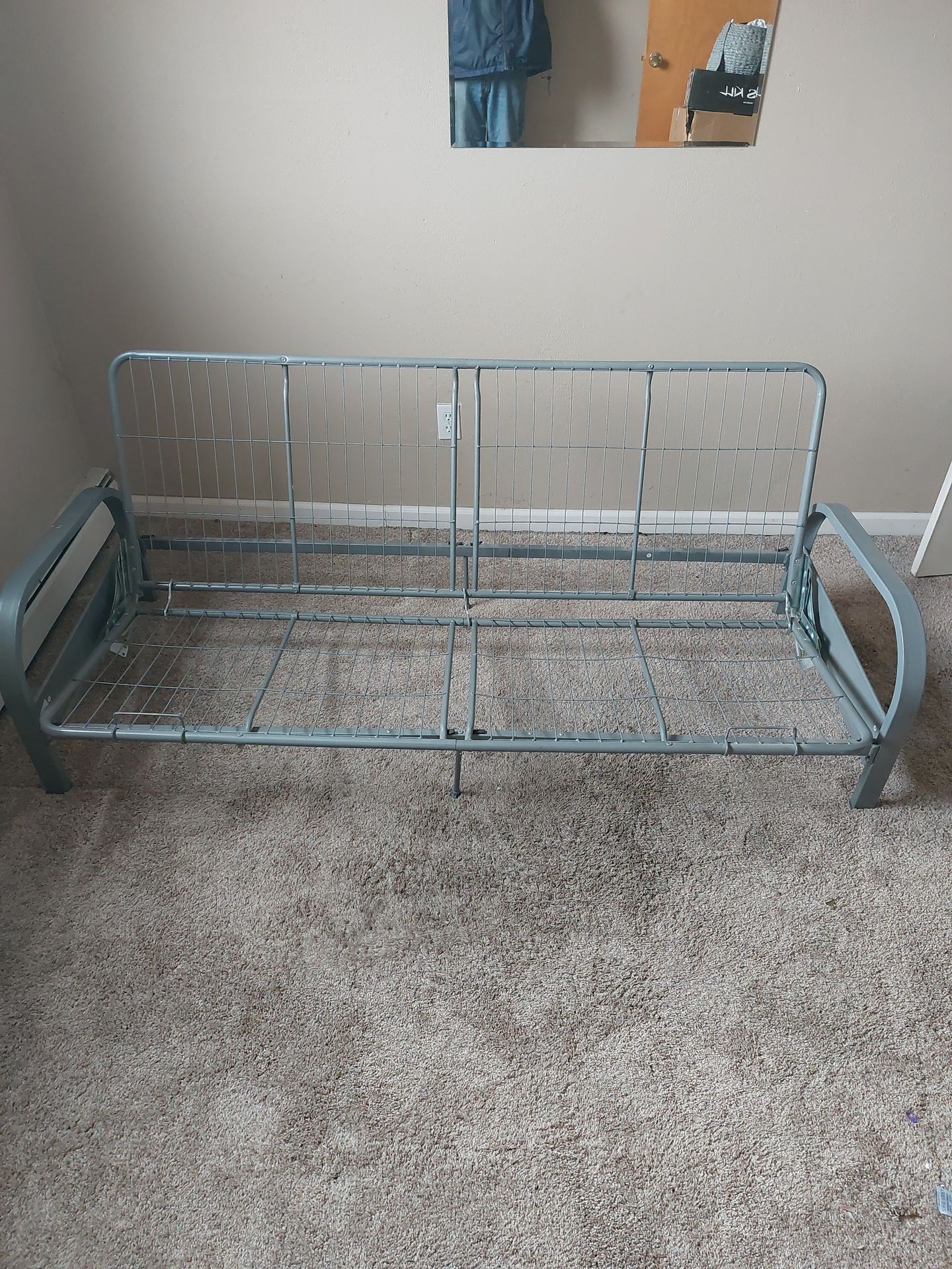 Grey Futon - Couch - Bed. Metal Frame. 77" L x 52" W x 30" H.