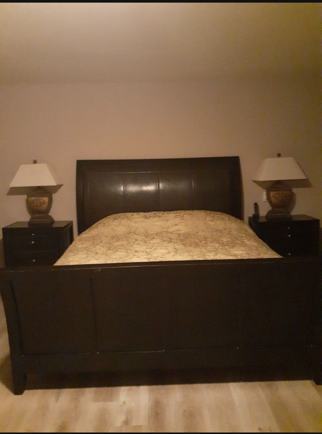 King size bed...headboard, footboard, and rails only. IT'S USED. Has tiny dots of paint that fell on it when we painted our bedroom. Too tiny to be seen on a picture. I'm only available on Sunday's for pickup. In JUSTIN Next to the TEXAS MOTOR SPEEDWAY.
