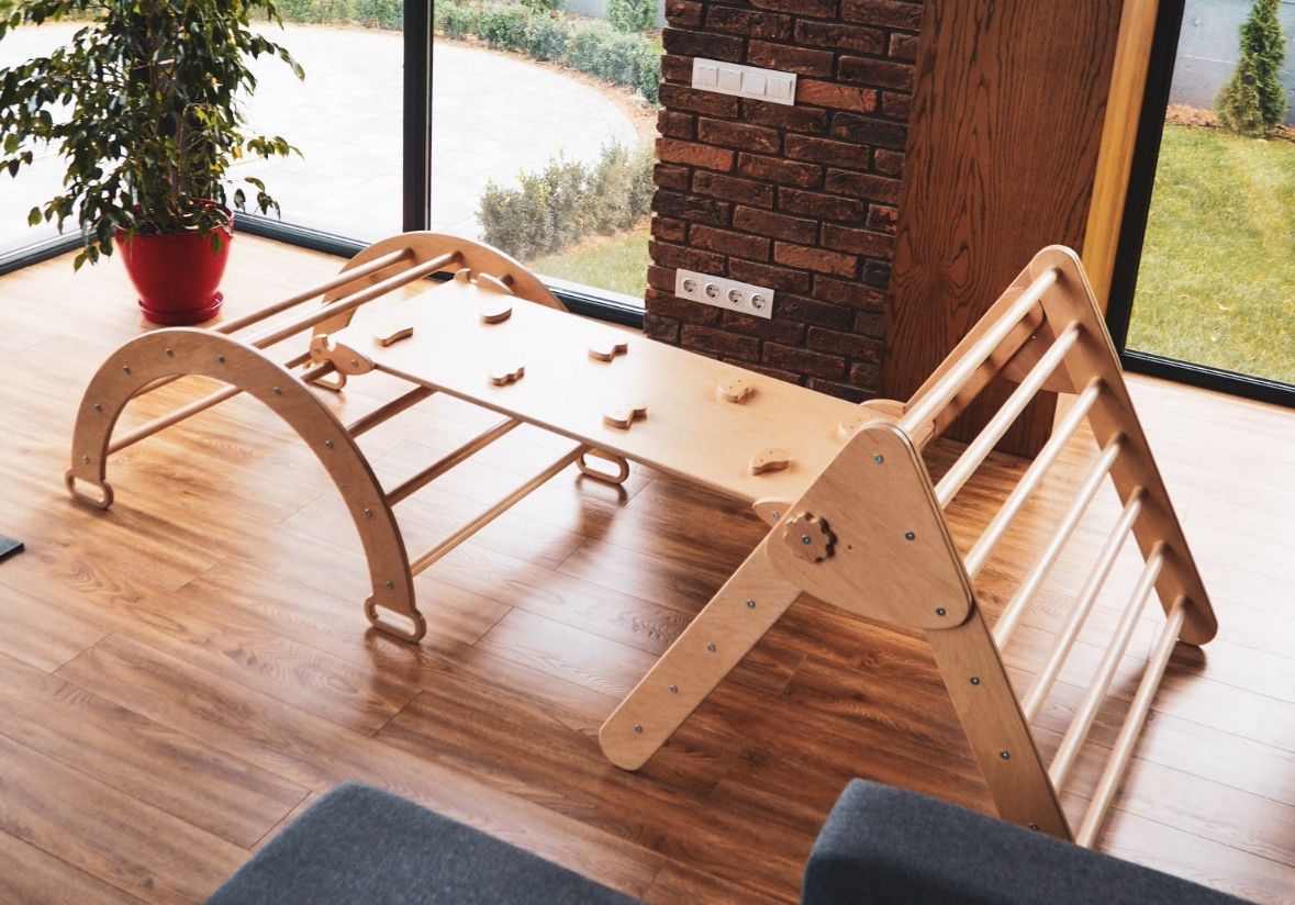 Original price: $320 I bought it as a gift for my kids, but she didn't like it, so it hasn't been used. It's a new item. three items: Climbing Arch, Climbing ramp and Climbing Triangle in Natural wood color CE, CPC and FSC certified ● Climbing Triangle Height: 81 cm / 31,9 inches Width: 87,2 cm/ 34,3 inches Length steps: 76,8 cm / 30, 2 inches ● Climbing ramp Height: 98,5 cm / 38,8 inches Width: 37,5 cm/ 14,9 inches ● Climbing Arch Height: 47 cm / 18,5 inches Width: 96,9 cm / 38,1 inches Length steps: 51,2 cm / 20,2 inches